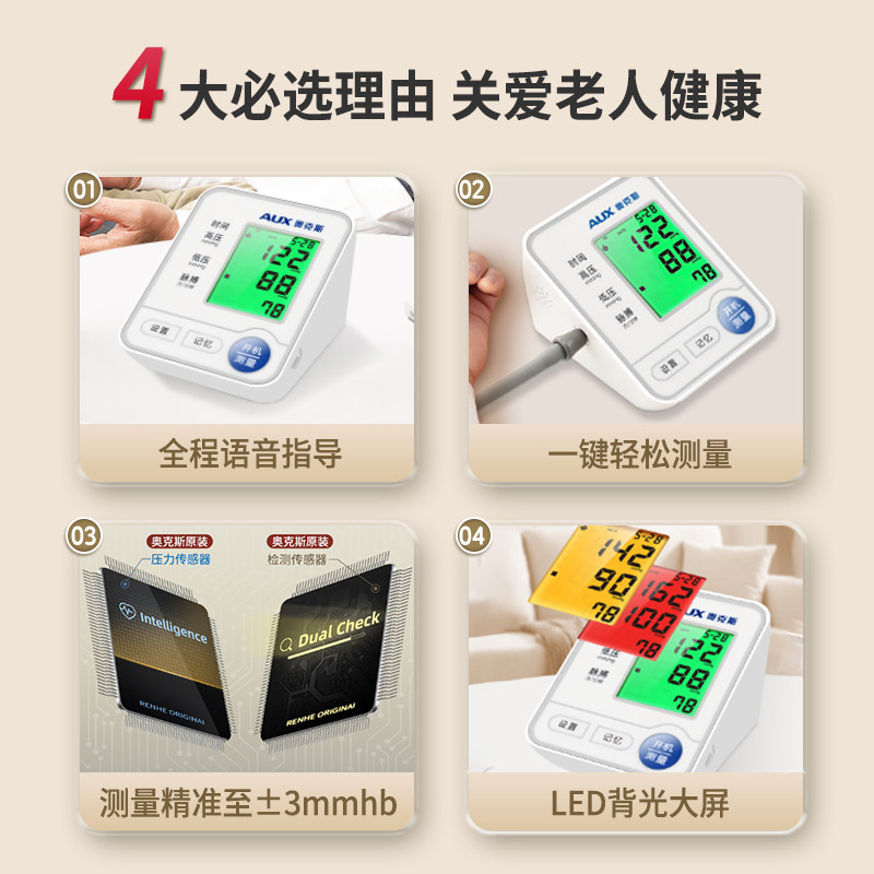 奥克斯血压计家用高精准血压计医院专用医用血压计家用电子血压计