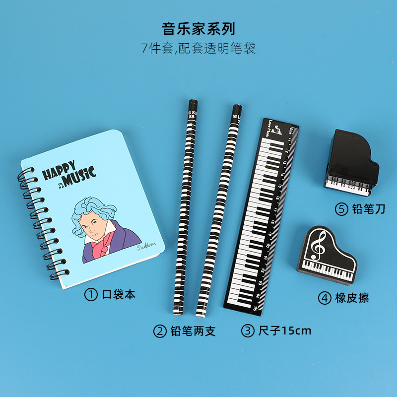 钢琴文具套装创意音乐家本子高音符铅笔尺子橡皮擦小学生礼品奖品