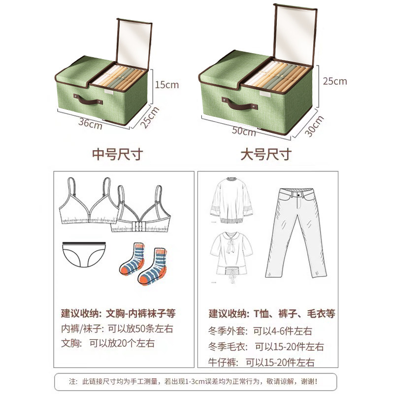 衣柜分层神器衣服收纳箱可水洗家用裤子整理盒筐布艺折叠储物箱