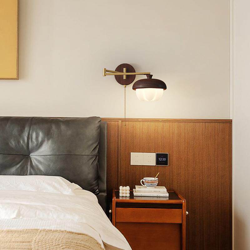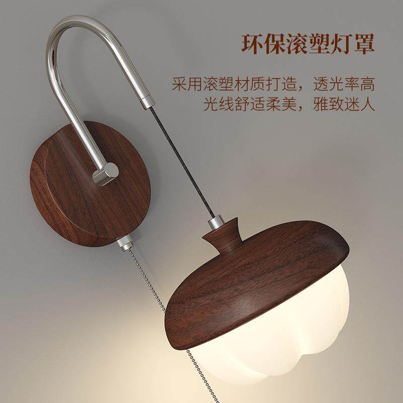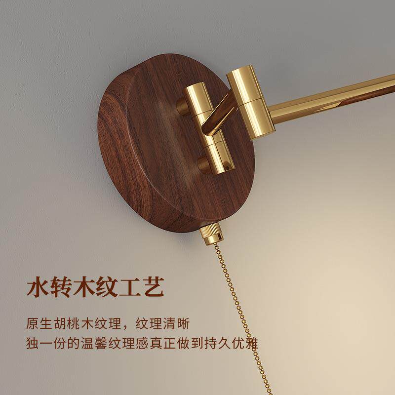 中古卧室床头壁灯轻法式复古侘寂风胡桃木纹摇臂伸缩客厅背景墙灯