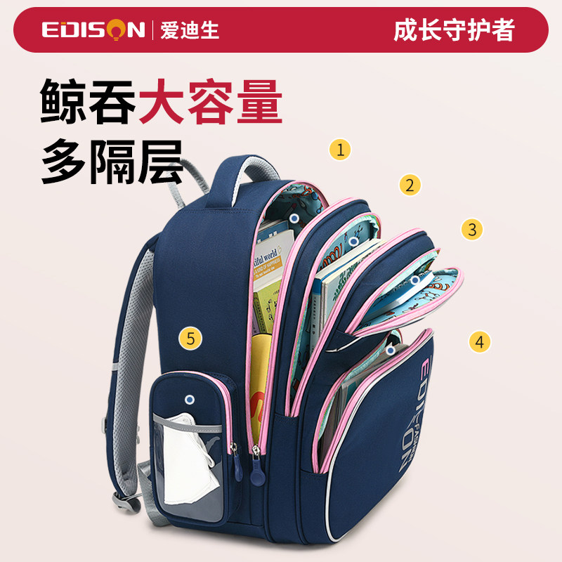爱迪生儿童书包女生小学生新款一二三到六年级大容量女孩减负护脊
