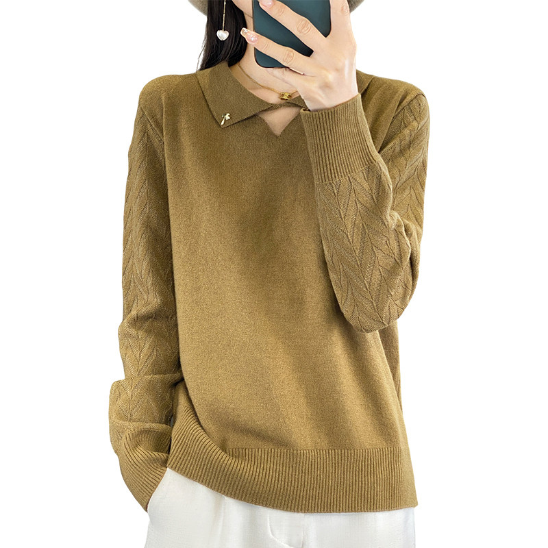 鄂尔多斯市断码羊绒开衫女春秋新款宽松毛衣外套翻领针织羊毛衫