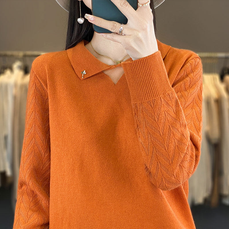 撤标撤柜(A)娃娃领针织打底衫春秋时尚洋气上衣内搭大码紫色毛衣