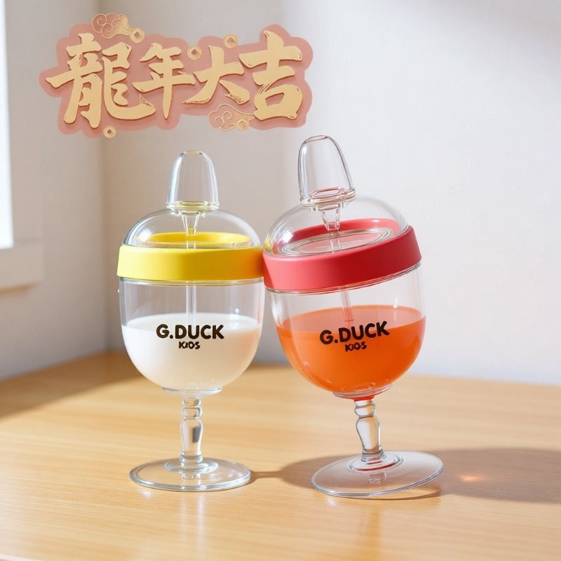 新款儿童高脚杯鸭嘴杯学饮杯酒杯式重力水杯奶瓶宝宝球牛奶果汁杯