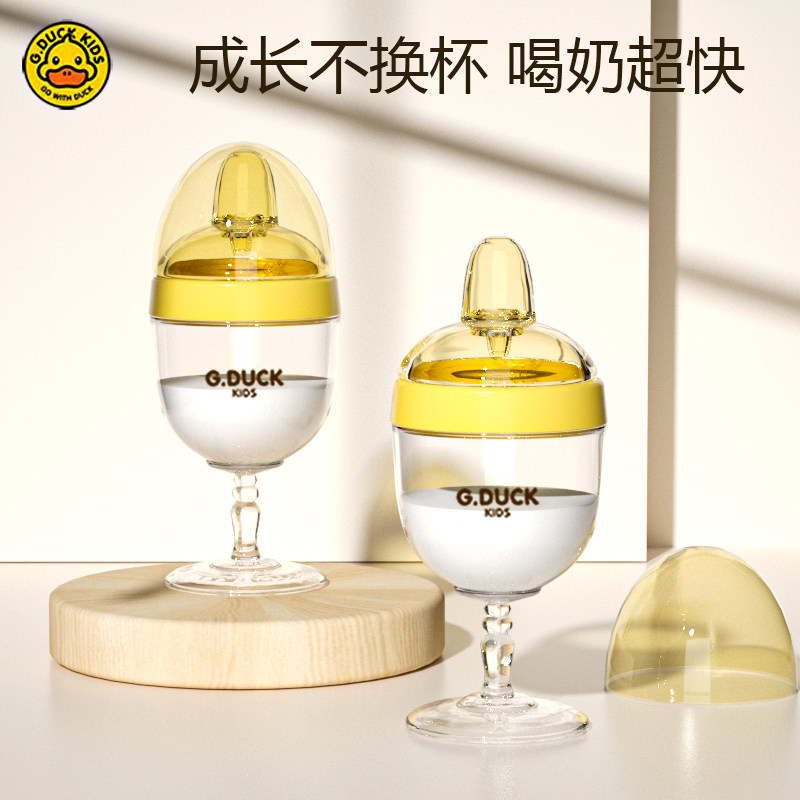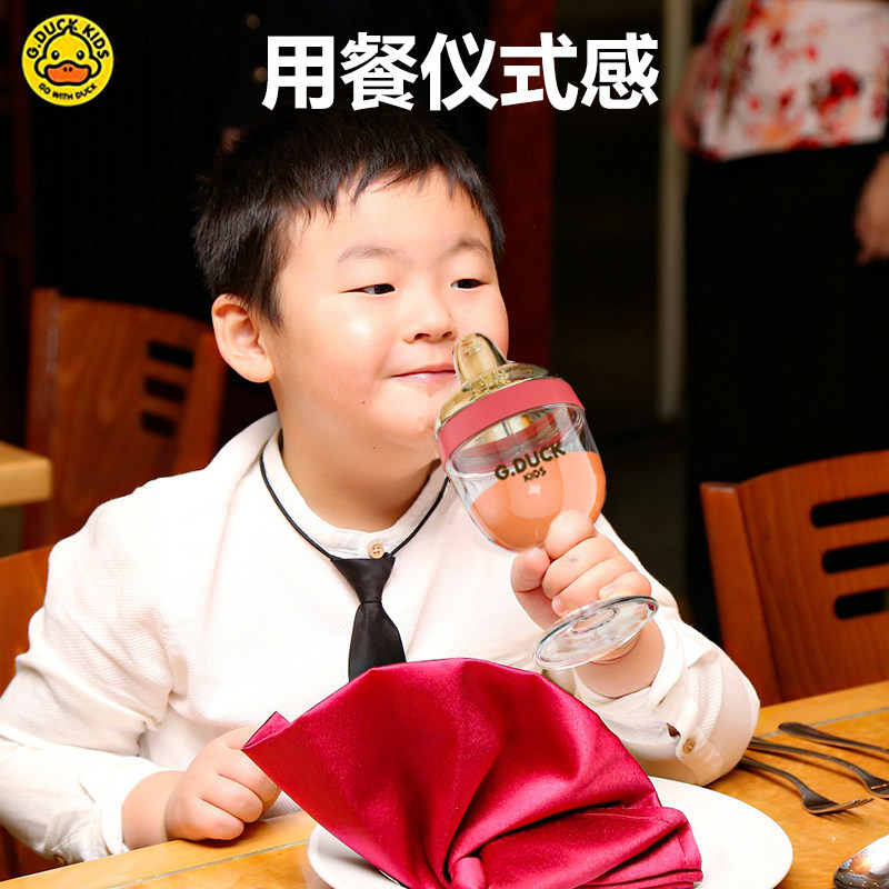 如山儿童高脚杯学饮杯鸭嘴宝宝喝水家用牛奶杯直饮果汁酒杯式奶瓶