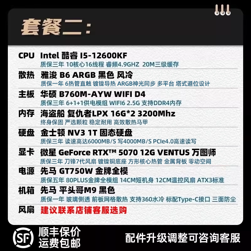 装机猿玩家店微星GeForceRTX5070万图师/魔龙12600KF/7800X3D主机