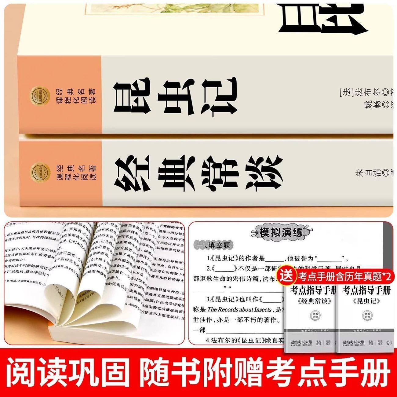 经典常谈和昆虫记八年级下册阅读名著朱自清法布尔原著完整版初二必读正版的课外书配套人教版八下文学教育书籍出版社人民长谈8上