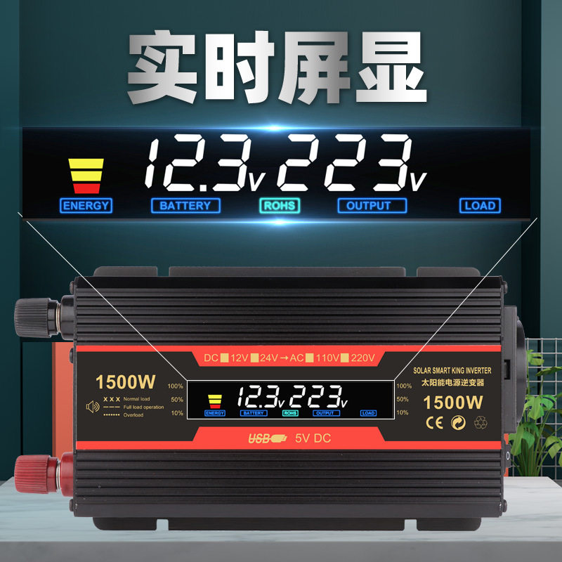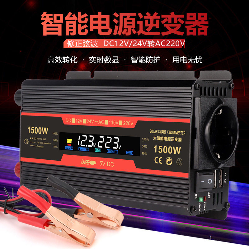 CARMAER修正弦波500W2000W欧规逆变器12V24V转220V60HZ车载逆变器