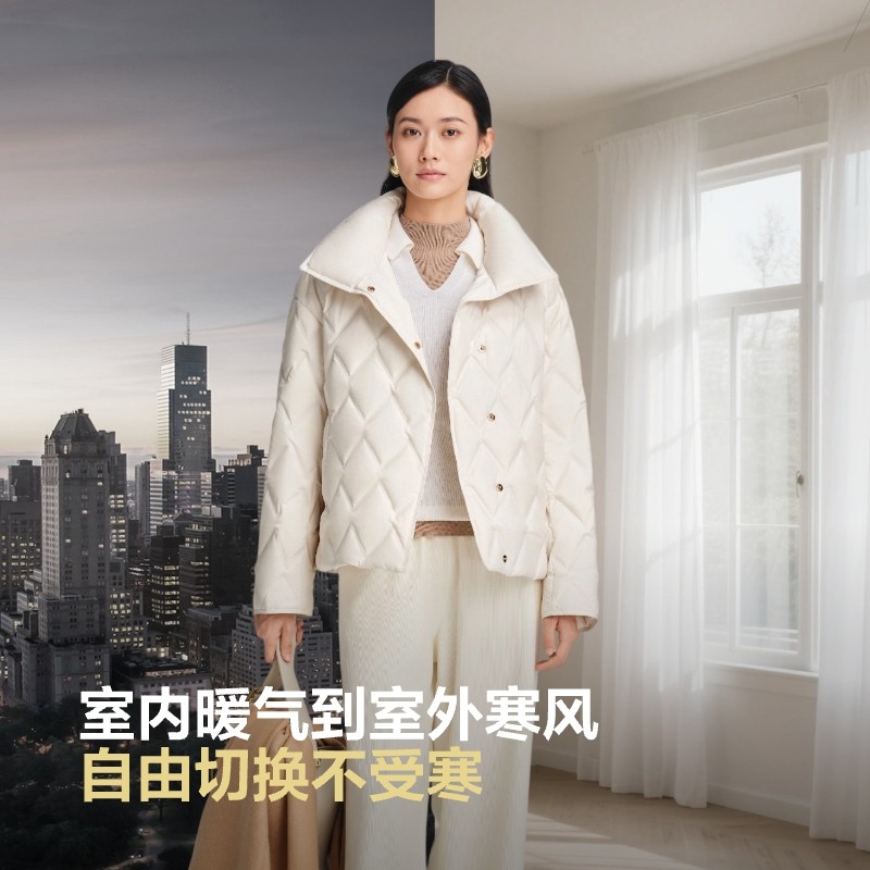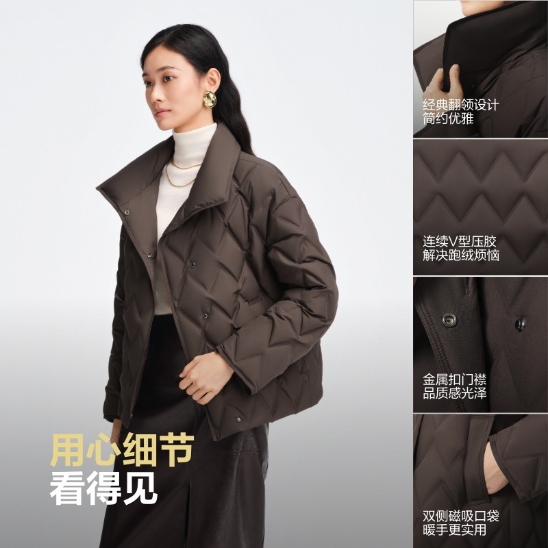 [90鹅绒]波司登25秋季新款女羽绒服短款翻领商务优雅品质亲肤舒适