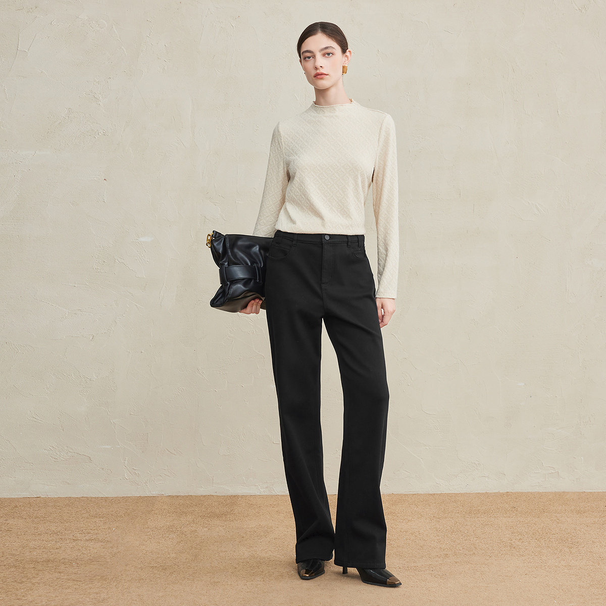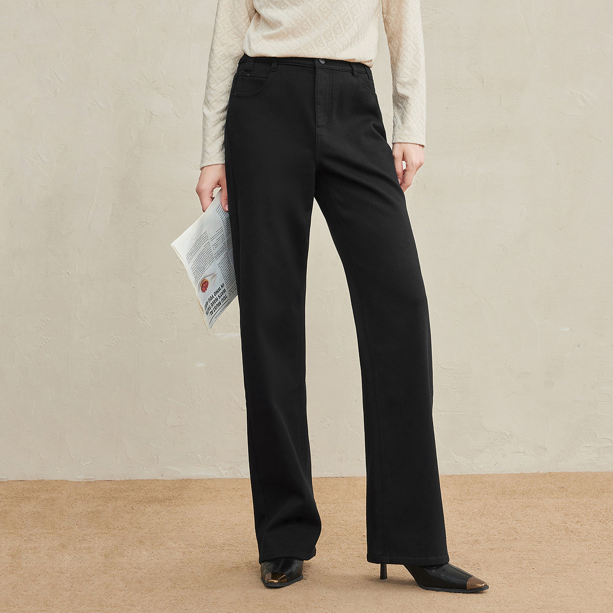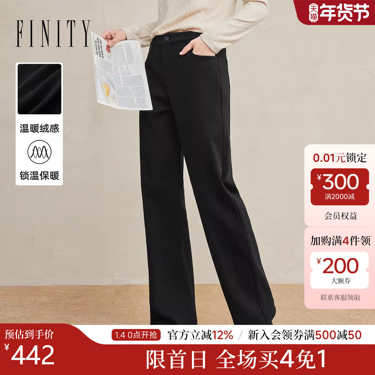 FINITY菲妮迪牛仔裤2025年冬季新款加绒棉质直筒百搭垂感长裤子女