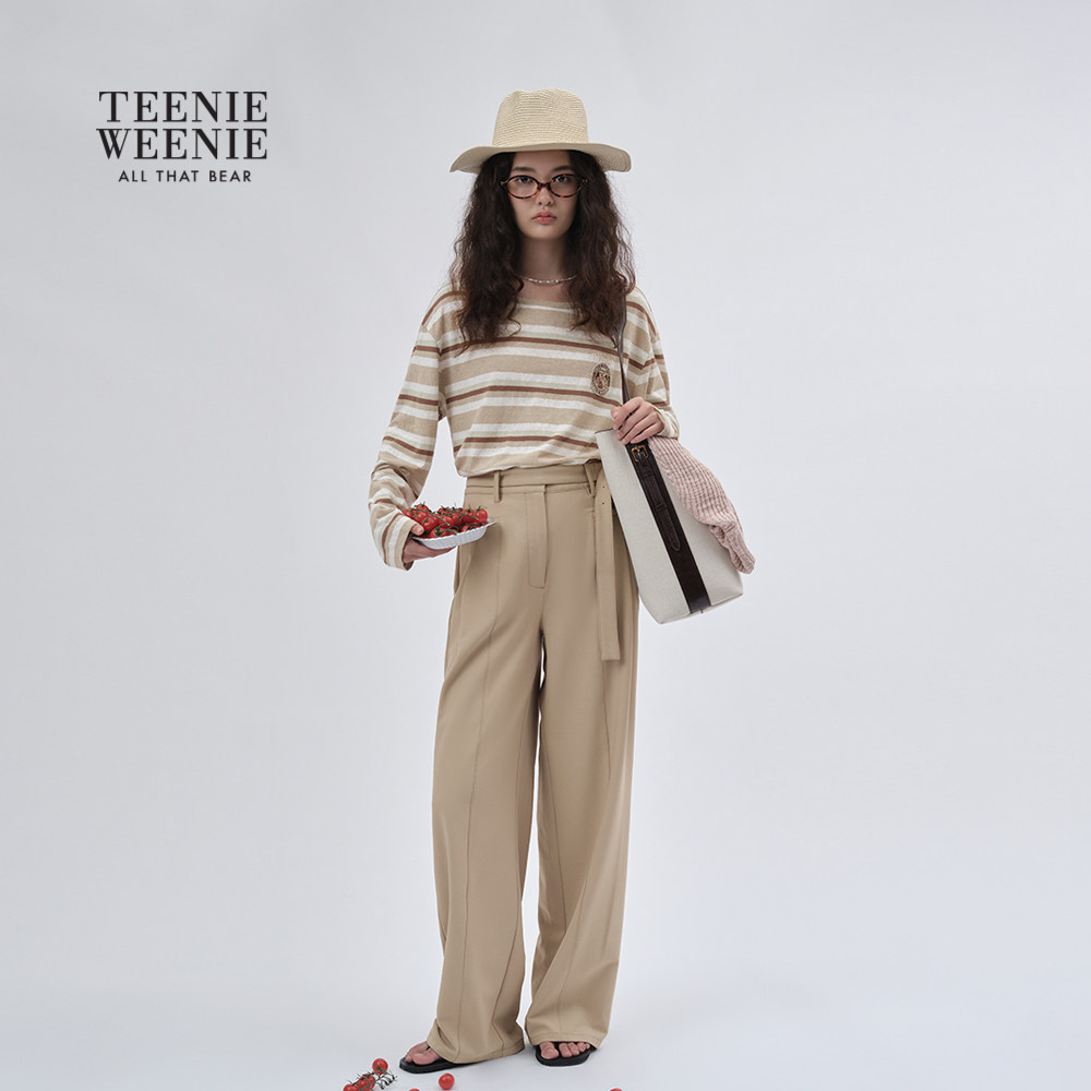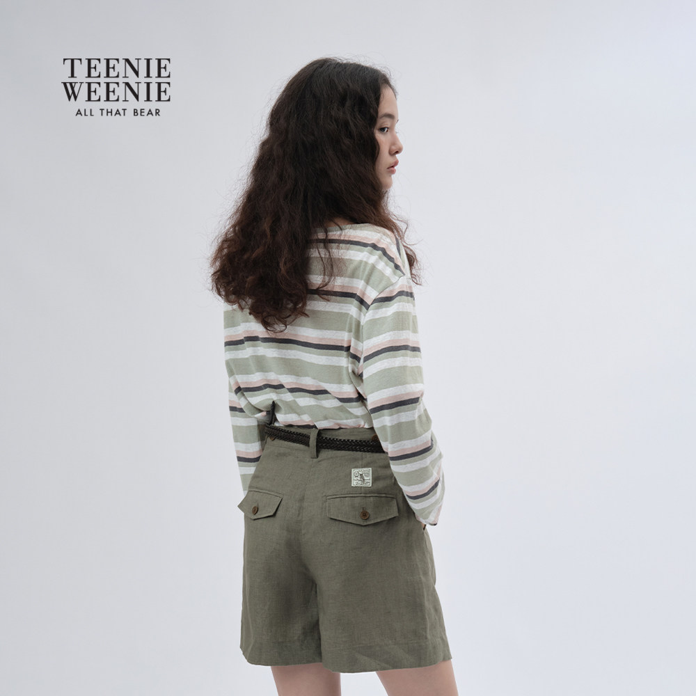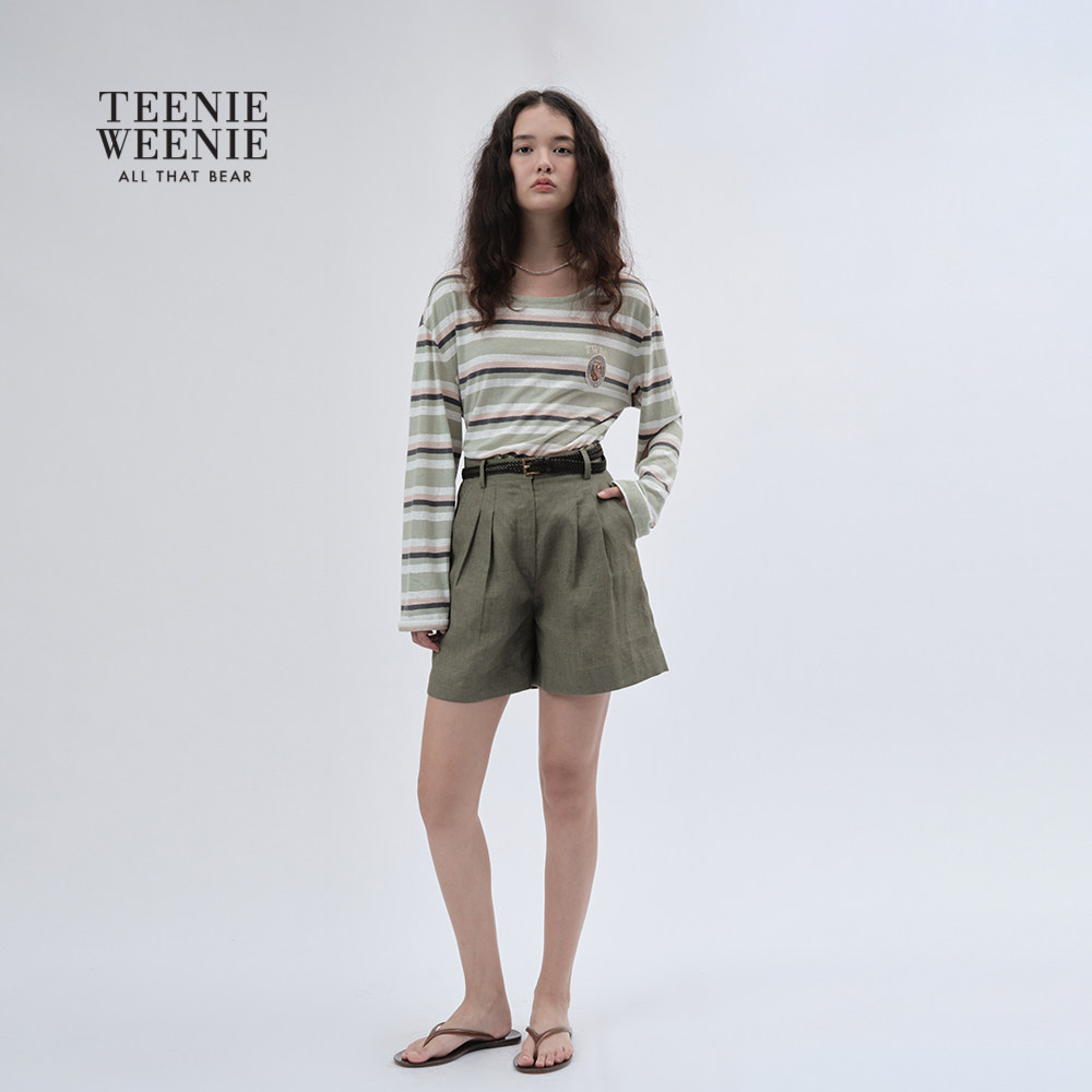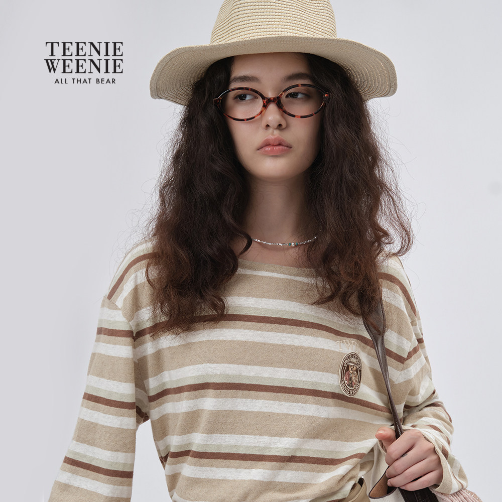 【含亚麻】TeenieWeenie小熊女装2025秋季新款长袖条纹薄T恤上衣
