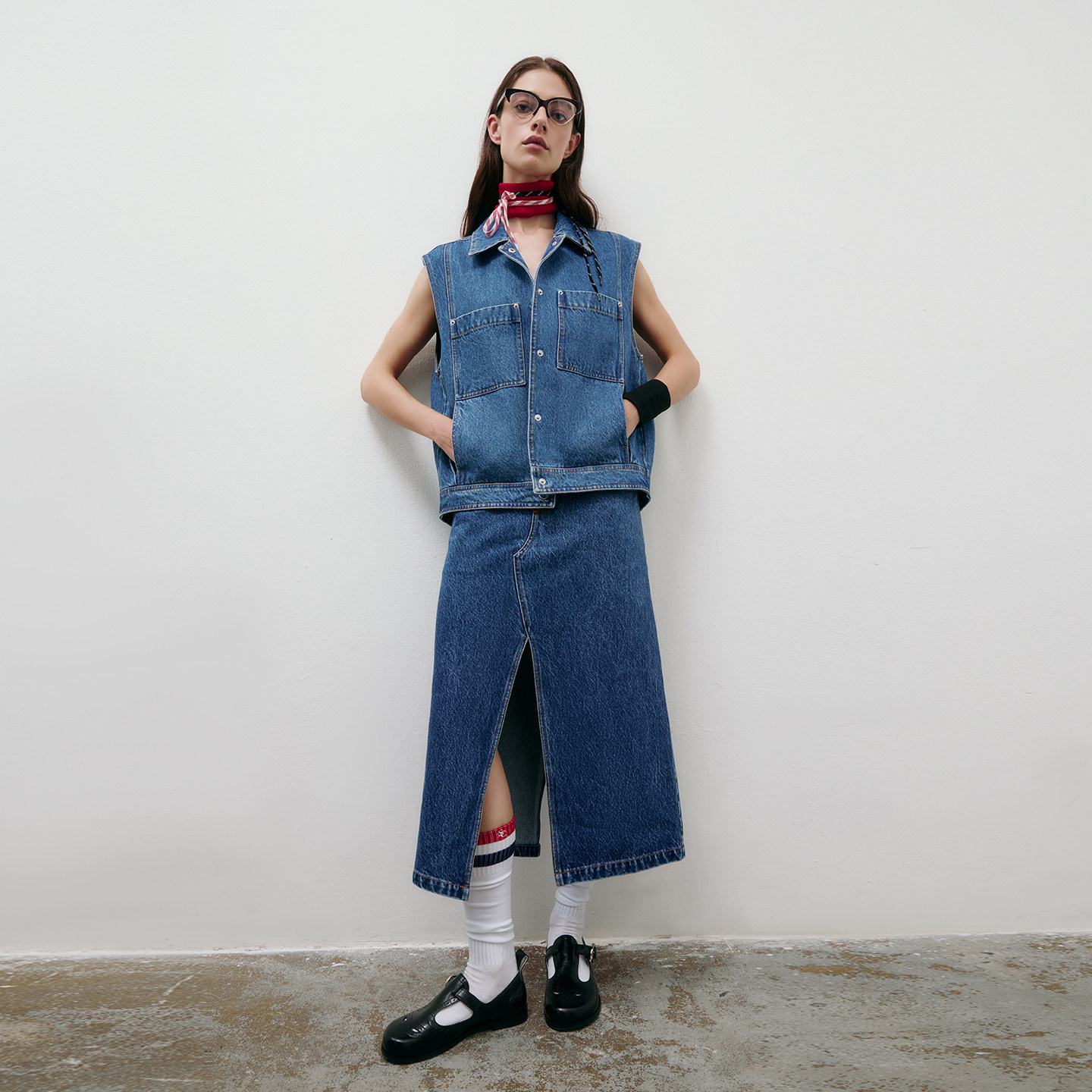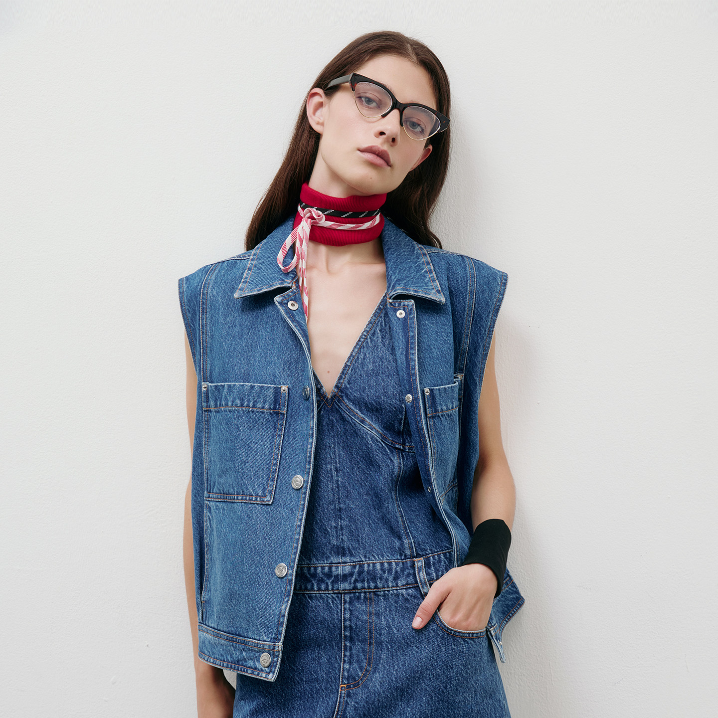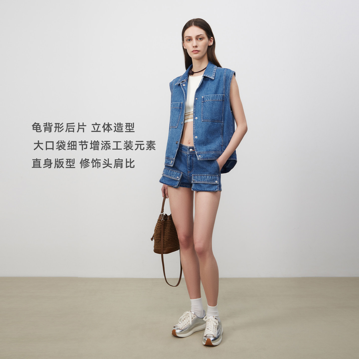立体龟背型牛仔马甲 经典水洗蓝挺阔骨感