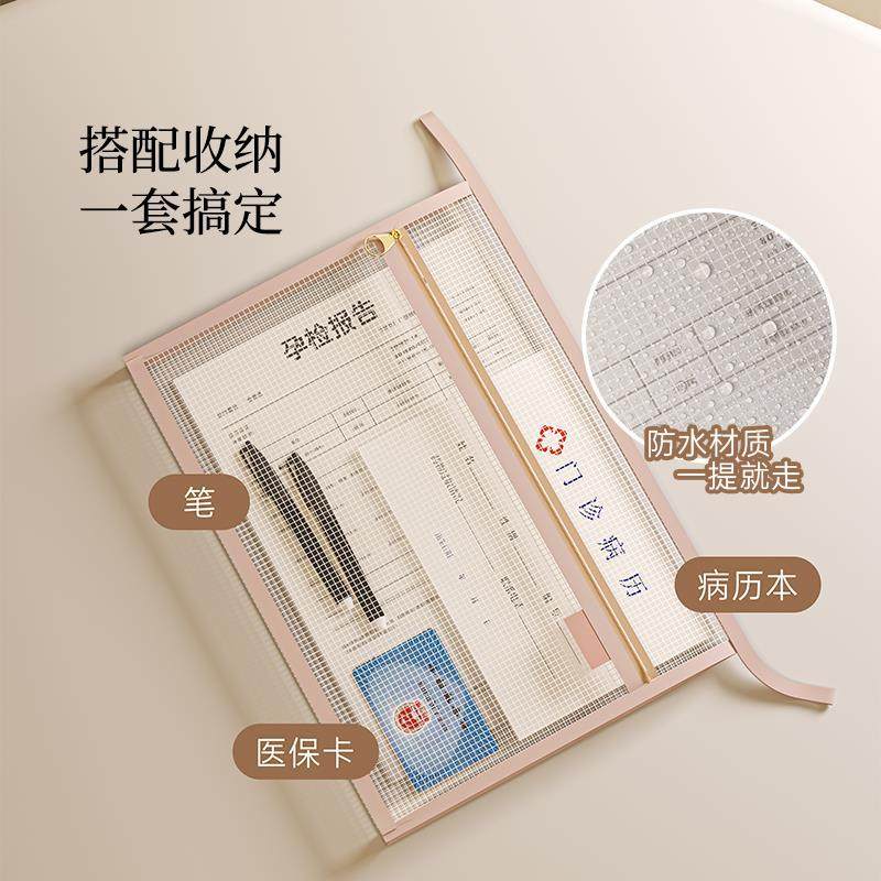 孕检资料袋孕期产检b超报告整理册透明便携防水体检报告收纳册证件档案袋