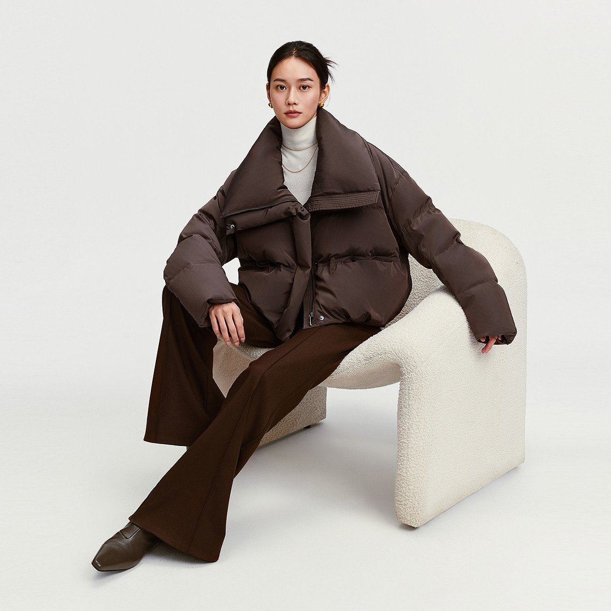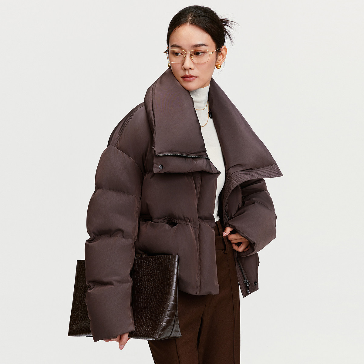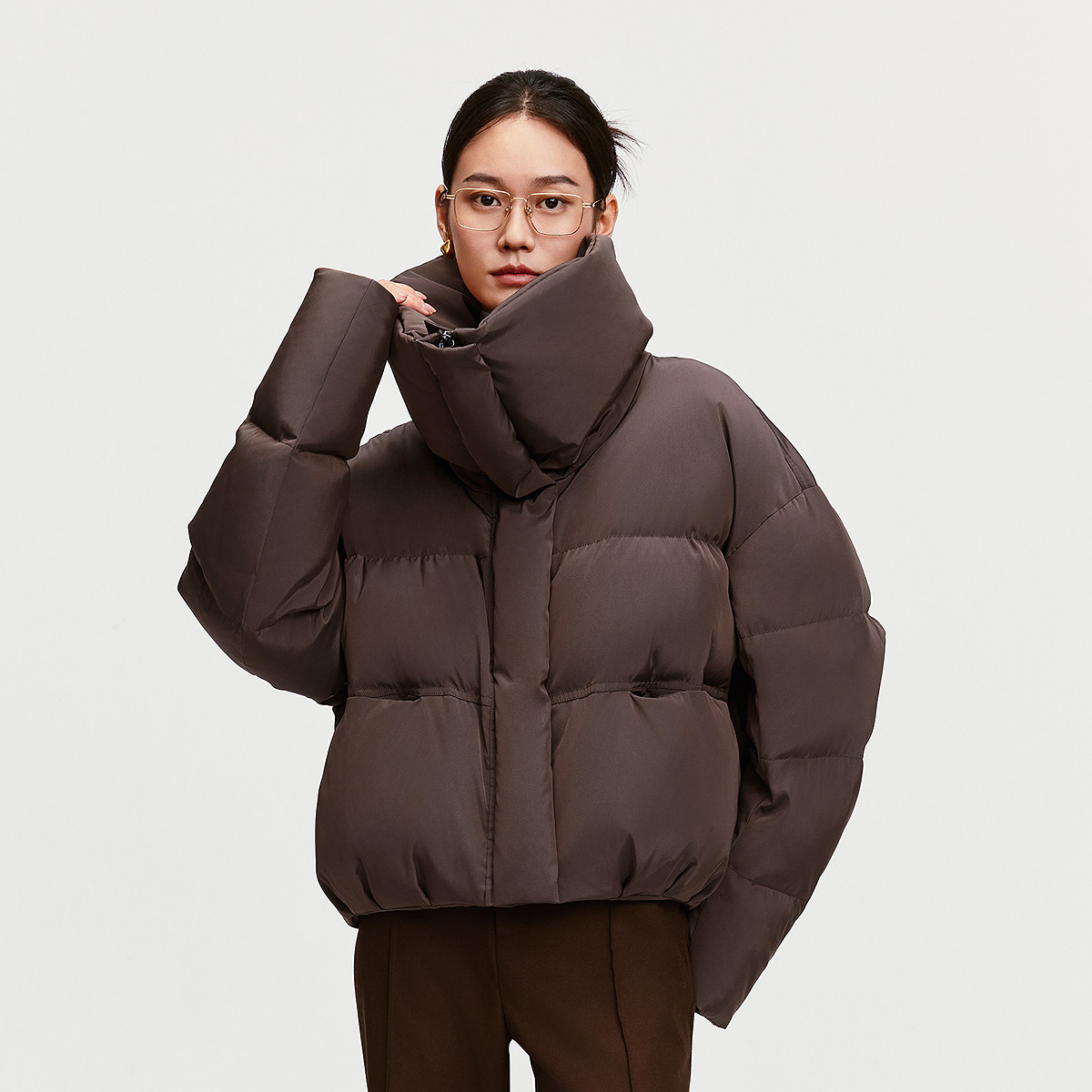【鞠婧祎同款】鸭鸭2025年冬新款百搭短款女士纯色立领羽绒服外套