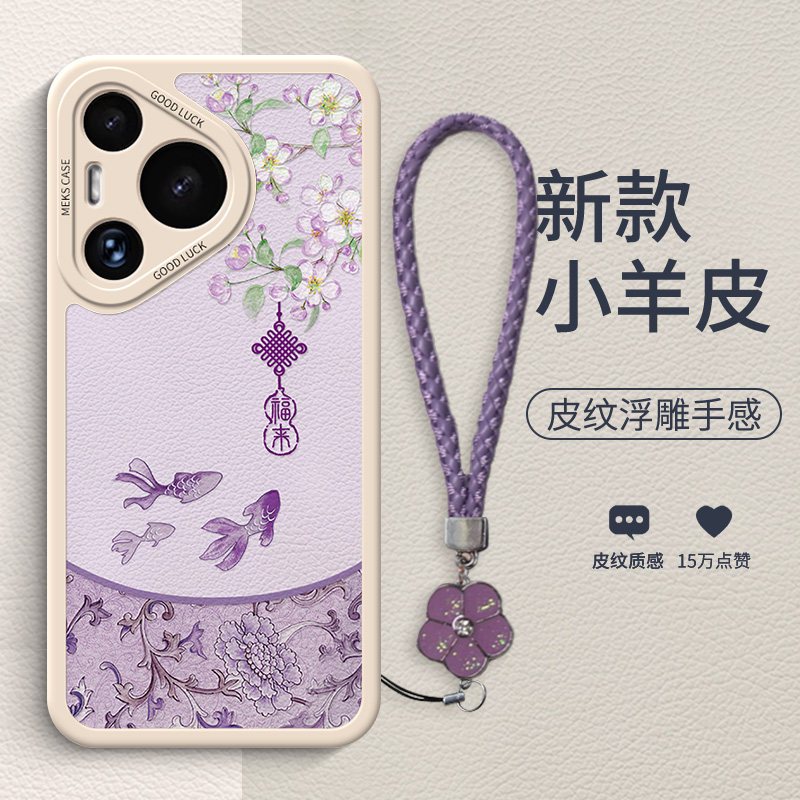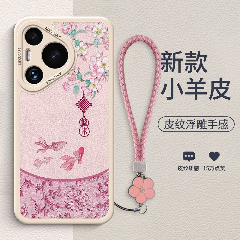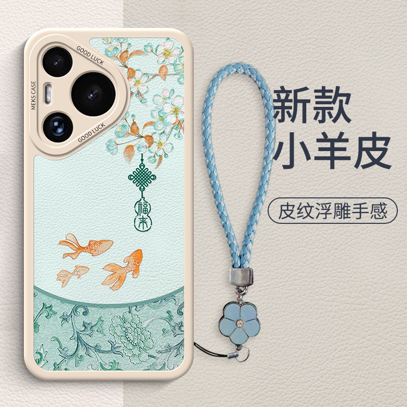 口袋花佑锦鲤适用华为pura70手机壳pura70pro+新款p60古风pro高级女款p50小羊皮p40全包p30防摔p20保护套