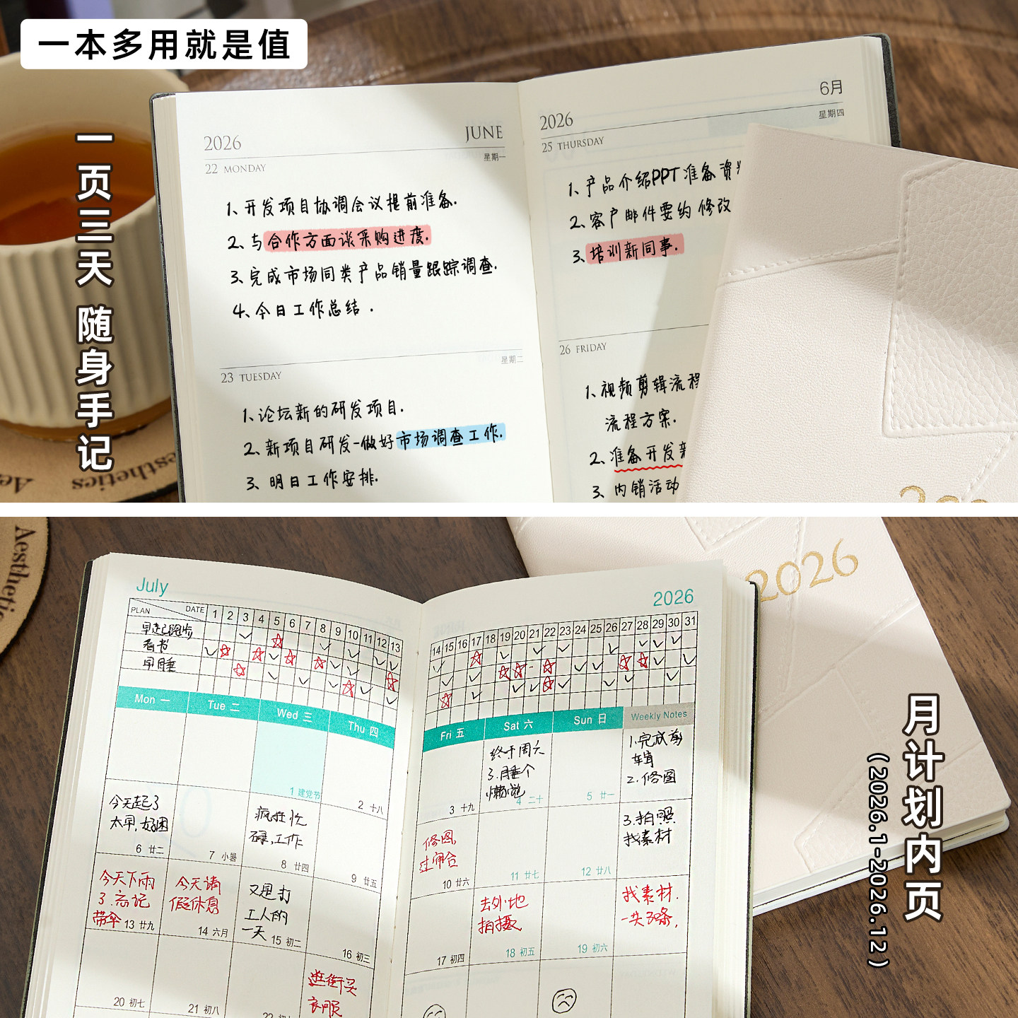2026年日程本新款计划表365天每日时间管理效率手册大学生日历自律打卡本高颜值记事本文艺精致手账笔记本子