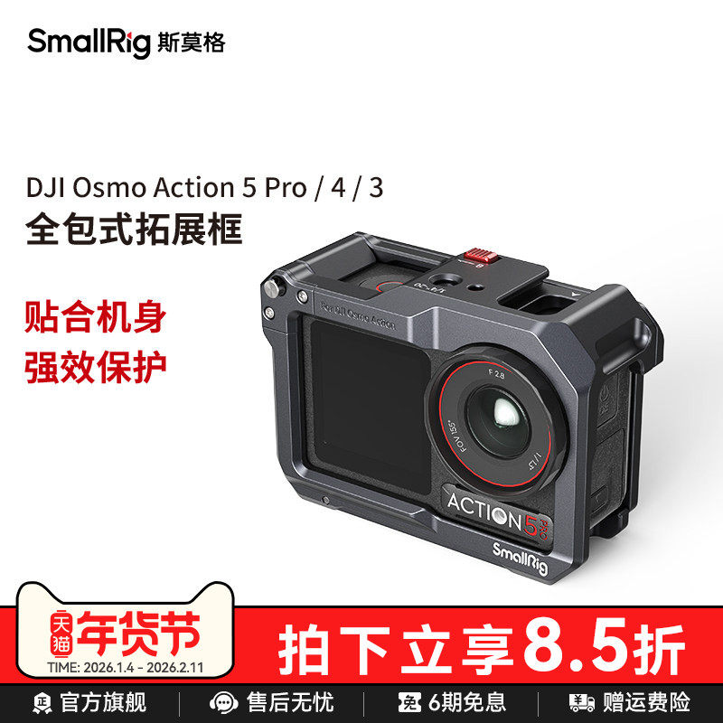 斯莫格适用DJI Action5 Pro/4运动相机拓展框手持杆录像cpl减光ND滤镜滑雪骑行大疆二爪磁吸转接底座兔笼配件