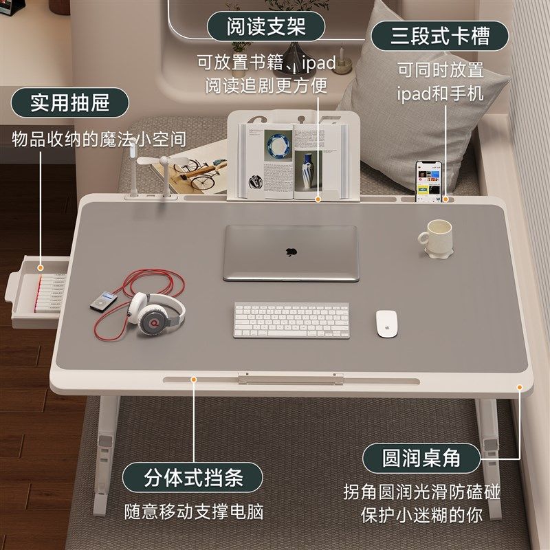 床上小桌子学习桌可折叠升降电脑桌书桌宿舍学生写字床用家用卧室坐地飘窗懒人笔记本电脑支架大号办公小桌板