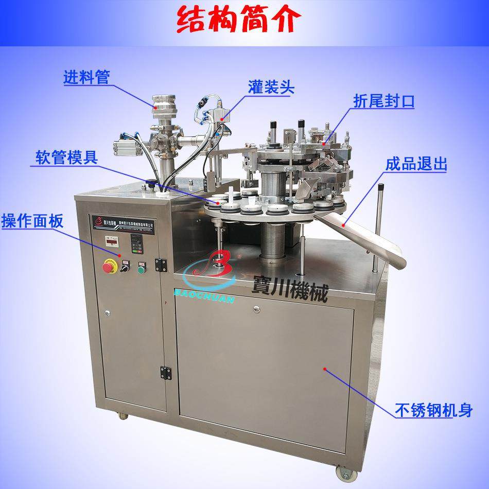 牙膏染发剂三折铝管折尾机膏液体两用灌装机金属铝管灌装封尾机