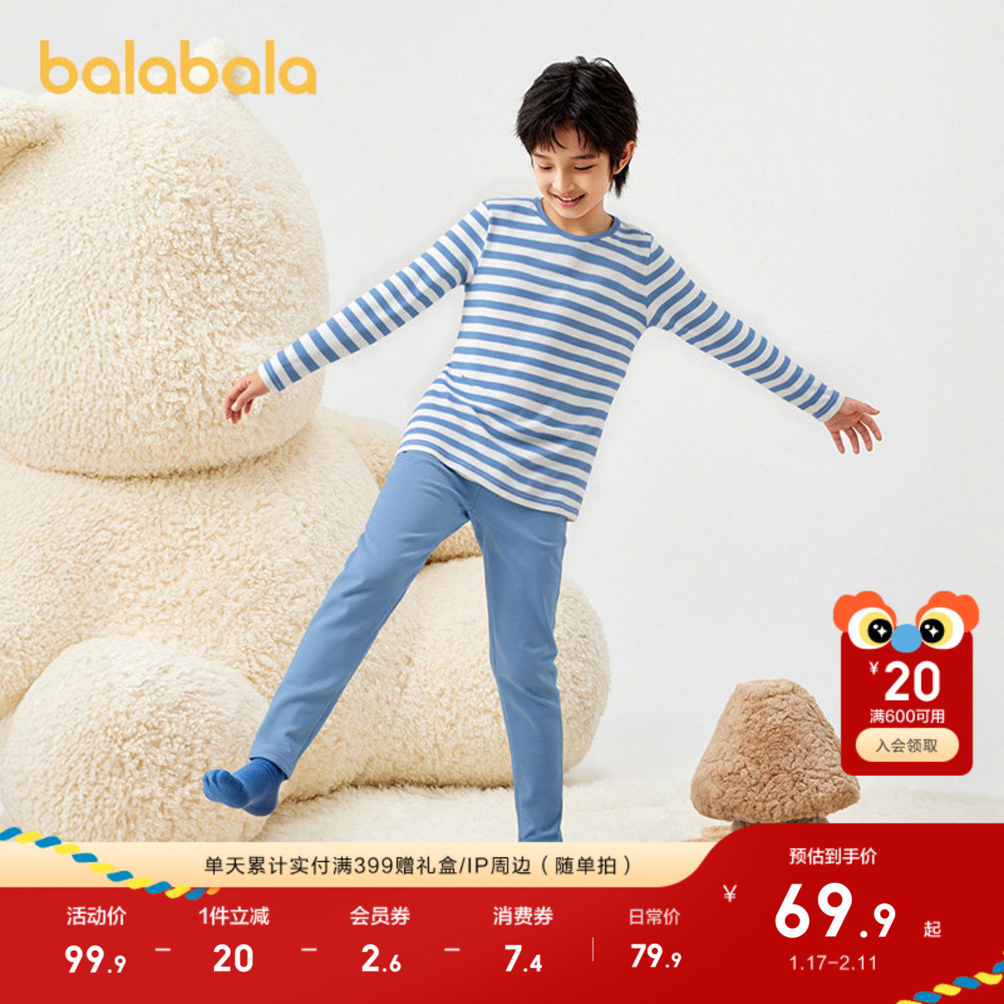 【balaOne】巴拉巴拉宝宝秋衣秋裤套装秋季儿童内衣男童女童打底