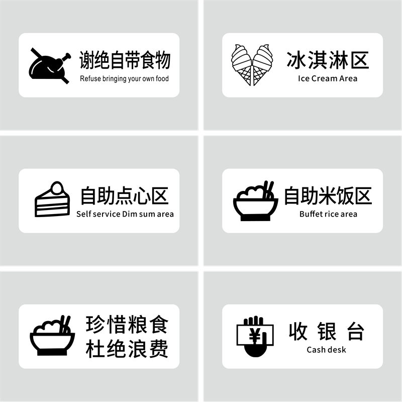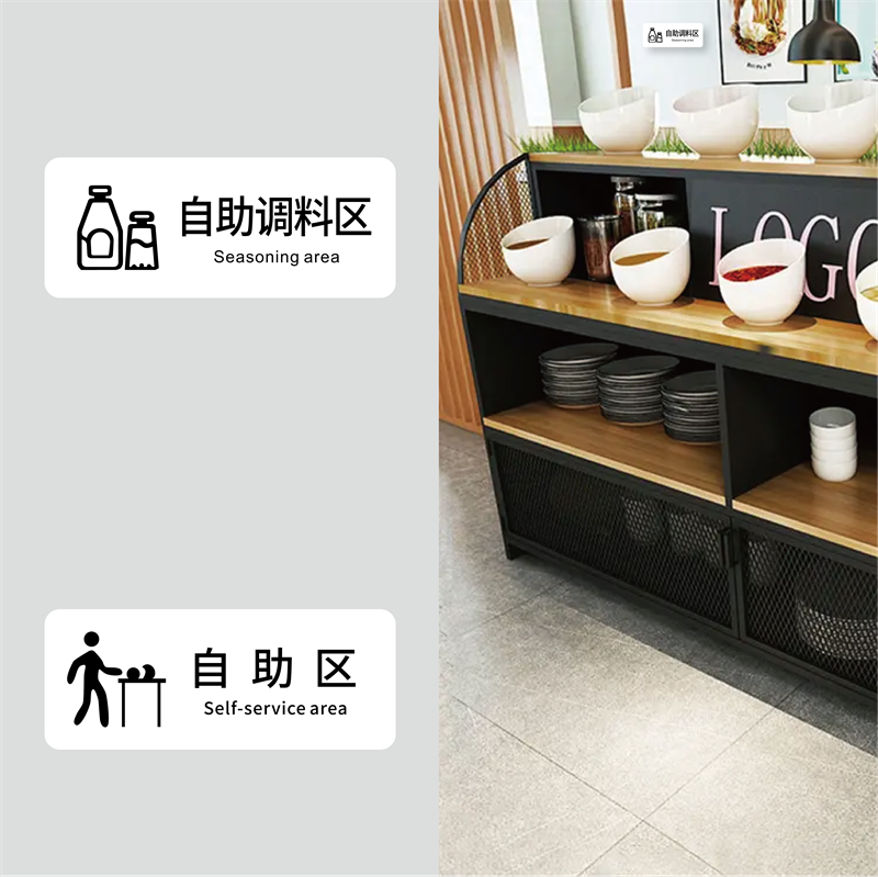 火锅店餐厅自助调料区免费小料自取蘸料台牌创意冰淇淋水果区茶水餐具自取墙贴珍惜粮食杜绝浪费温馨提示牌