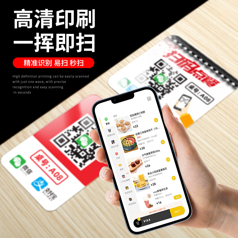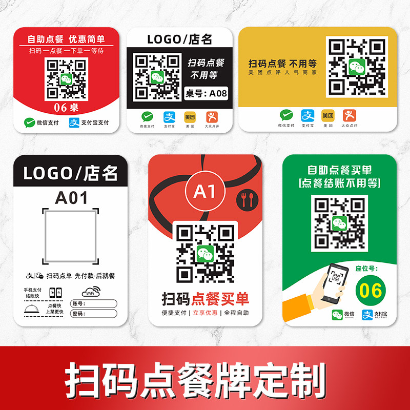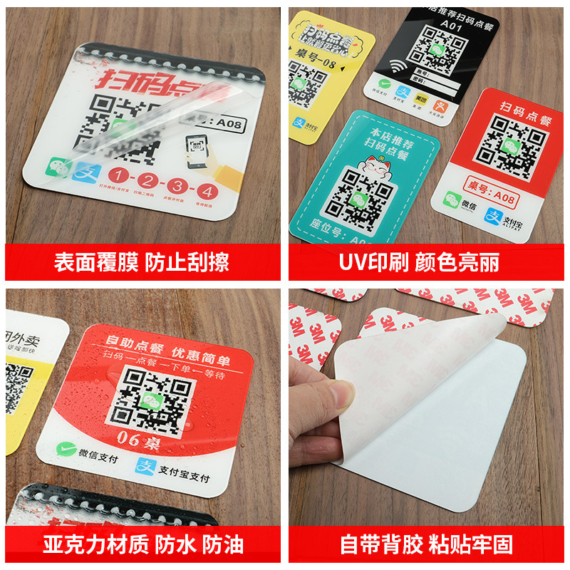 扫码点餐二维码桌贴订制亚克力桌号贴点单桌牌点菜二维码定制贴纸台号牌酒吧点餐牌PVC自助扫码棋牌室二维码