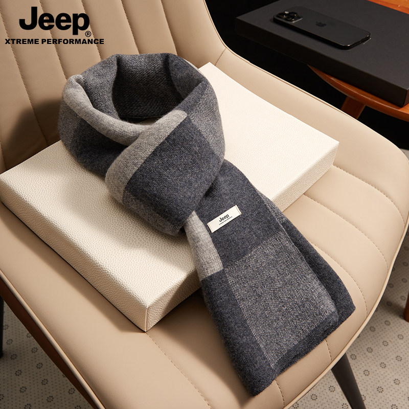 jeep吉普男士围巾保暖冬季加绒加厚送男友生日礼物围脖男冬礼盒装