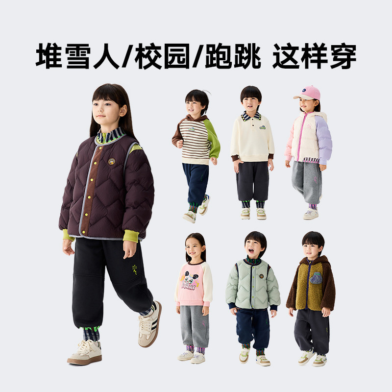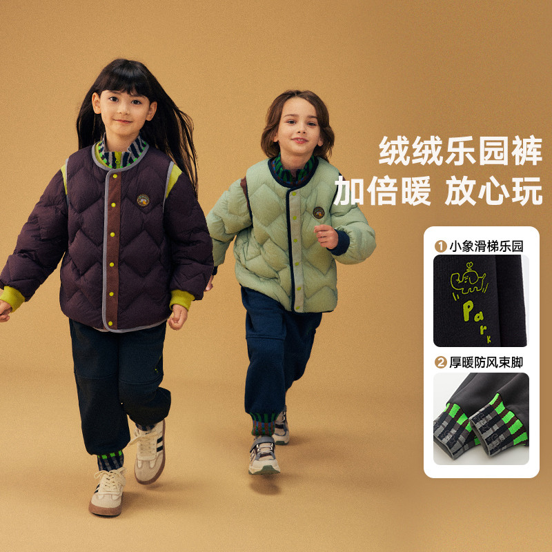 马拉丁儿童裤子25冬装新款男童女童小童罗纹萝卜裤加绒针织长裤
