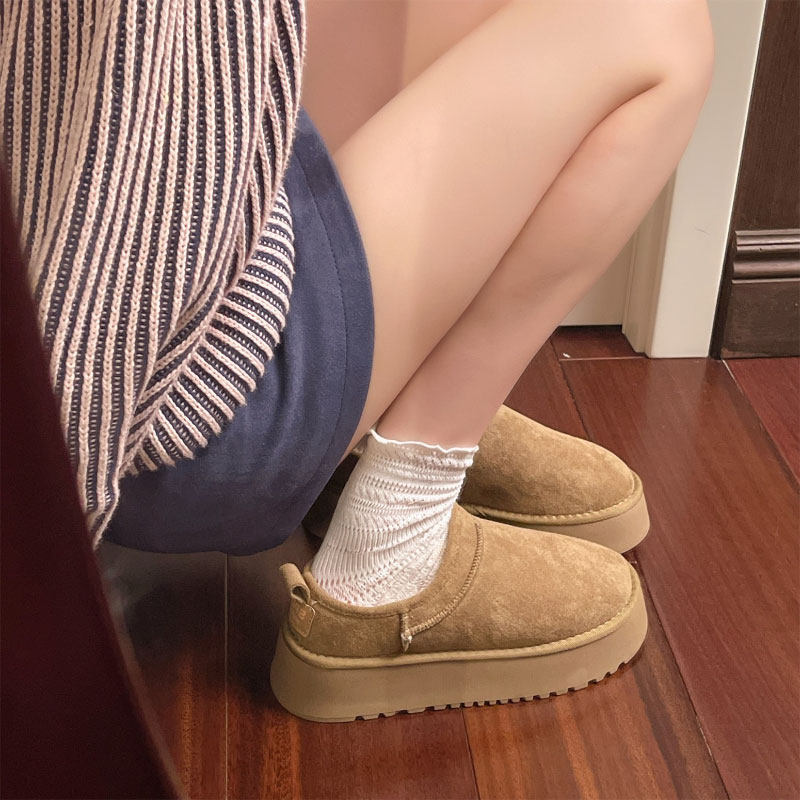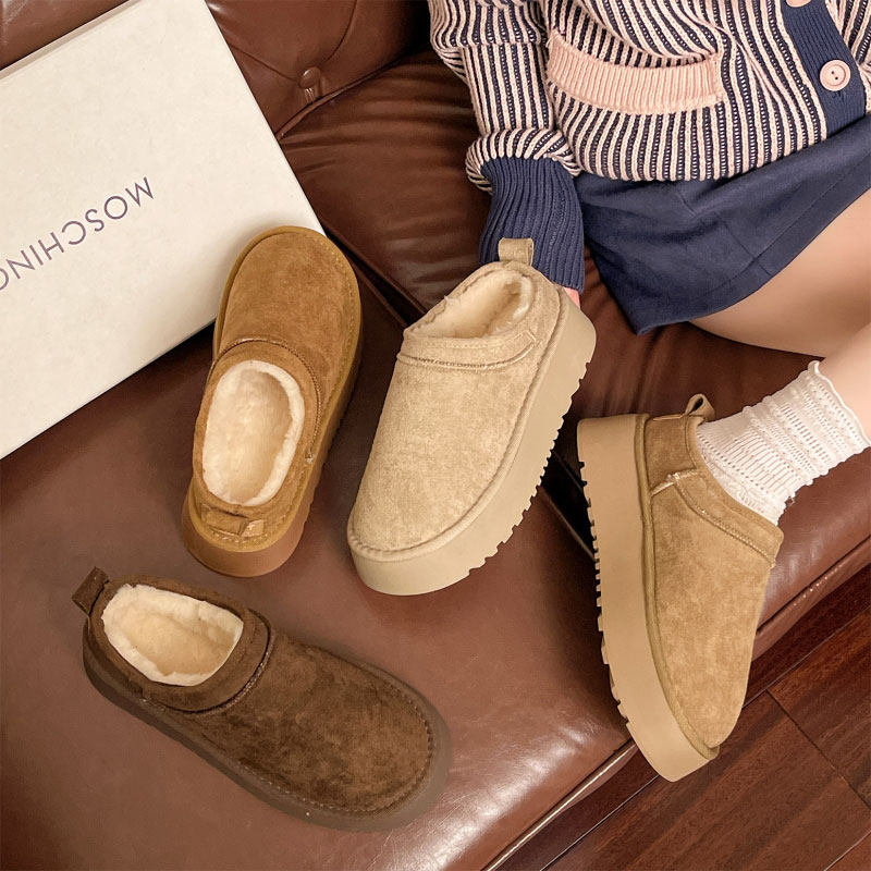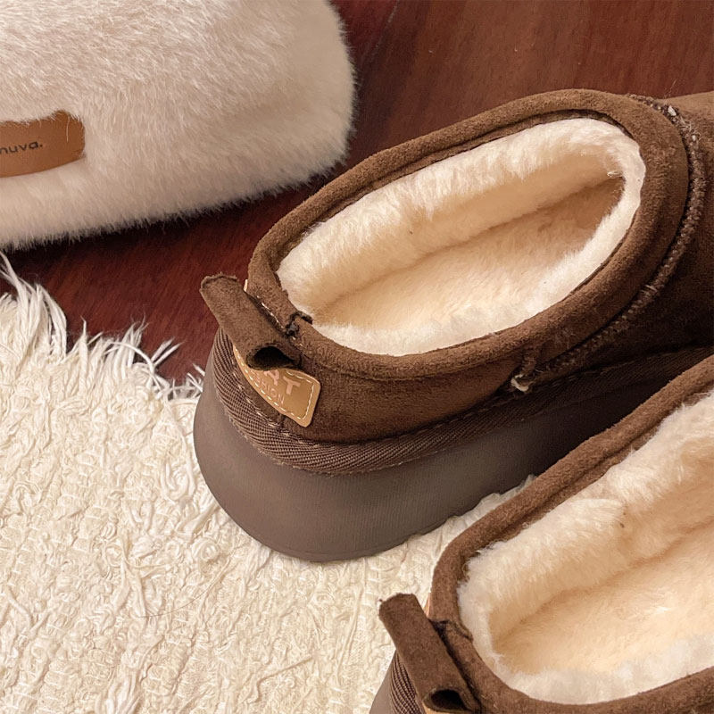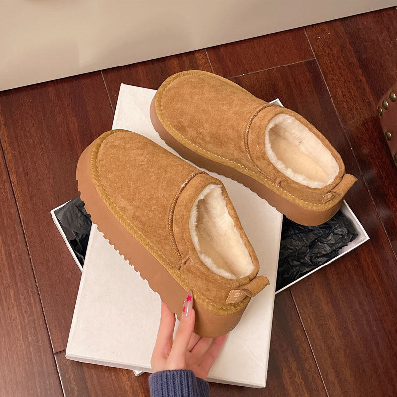 低帮厚底雪地靴女2025新款冬季懒人一脚蹬毛毛棉鞋加绒加厚女鞋子