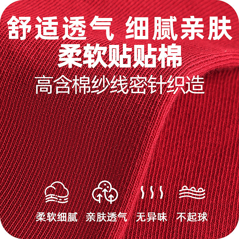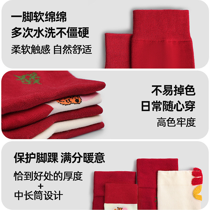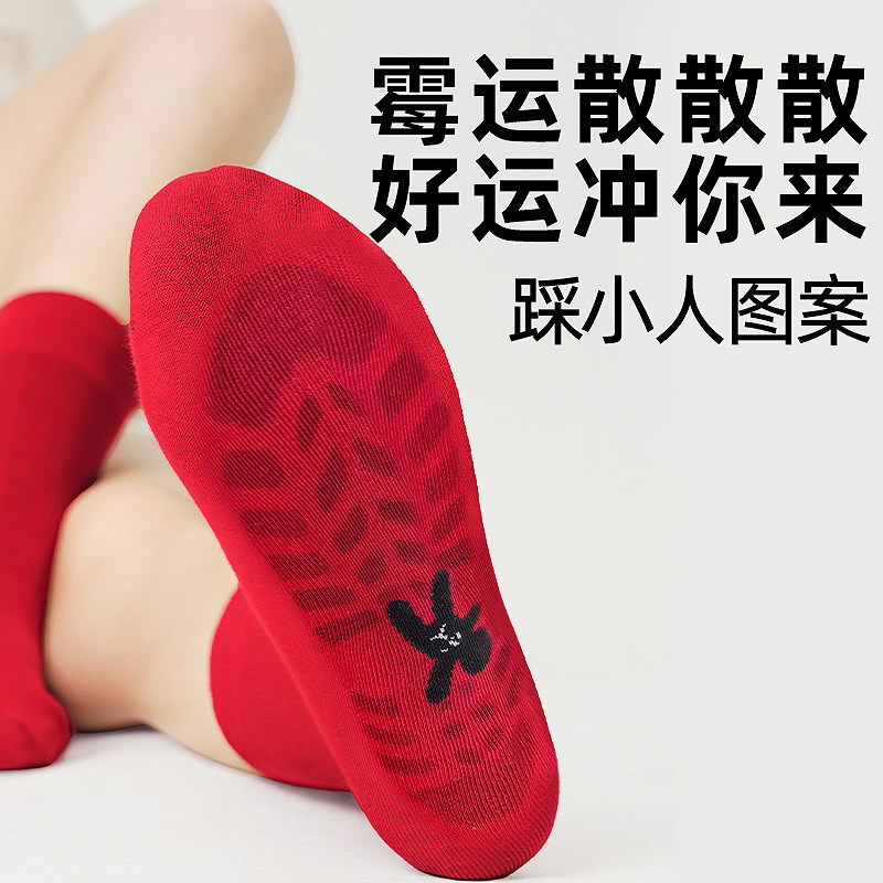 好奇蜜斯中筒袜子女红色本命年无骨秋冬不勒脚保暖防臭可爱25新年