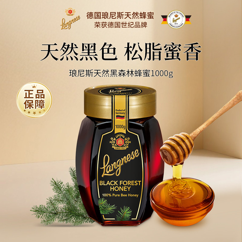 德国原装进口蜂蜜琅尼斯黑森林松树蜂蜜天然黑蜂蜜大玻璃瓶1公斤