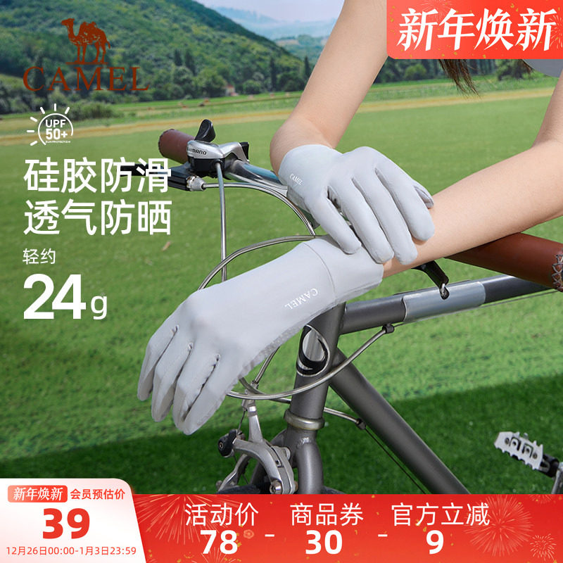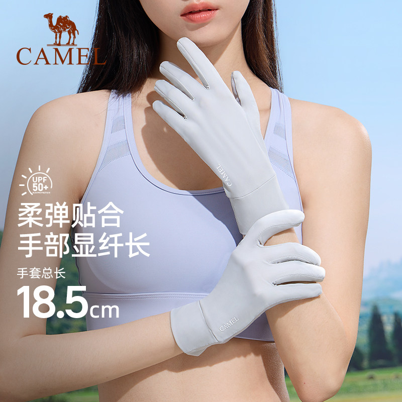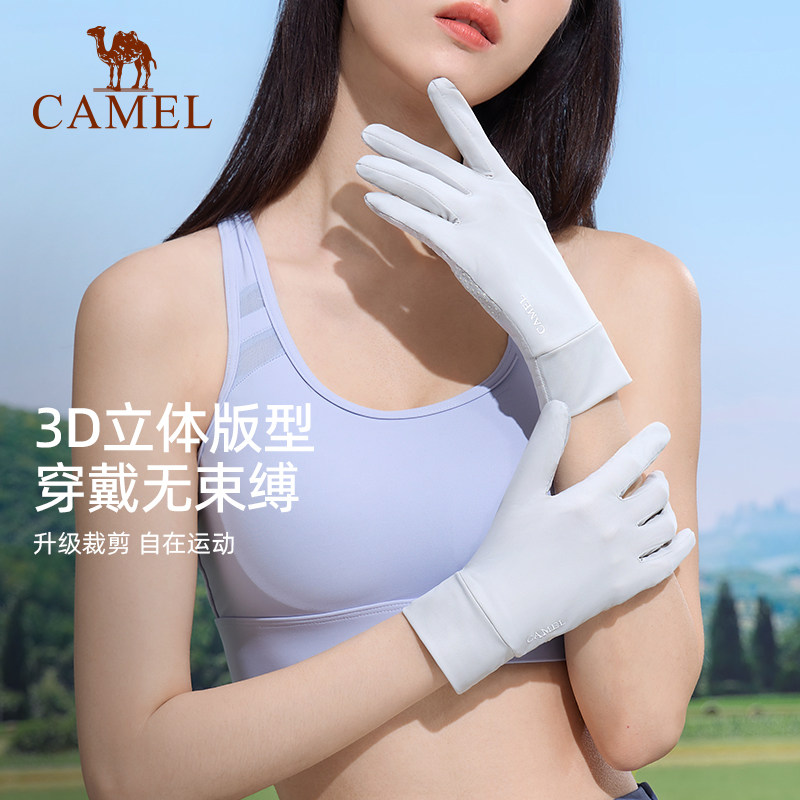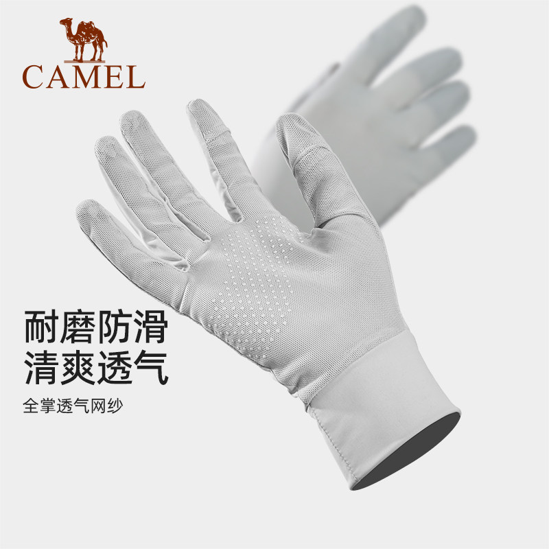 骆驼夏季防晒手套女冰丝防紫外线户外骑行开车遮阳露指防晒手套女