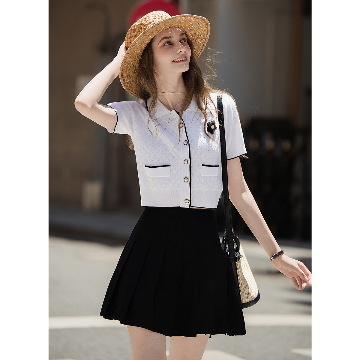 唐狮小香风套装女秋季新款半身裙套装气质上衣百褶裙两件套d9tu
