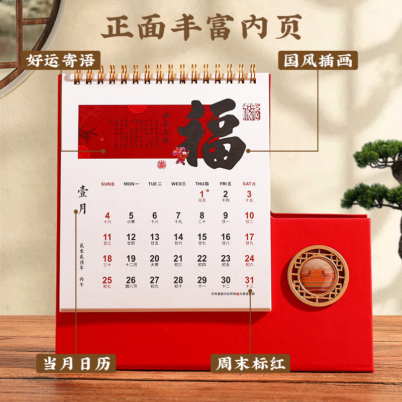 新款国潮创意台历2026年桌面每日记事提醒国风小摆件打卡日历制作企业礼品月历办公室公司企业定制可印logo