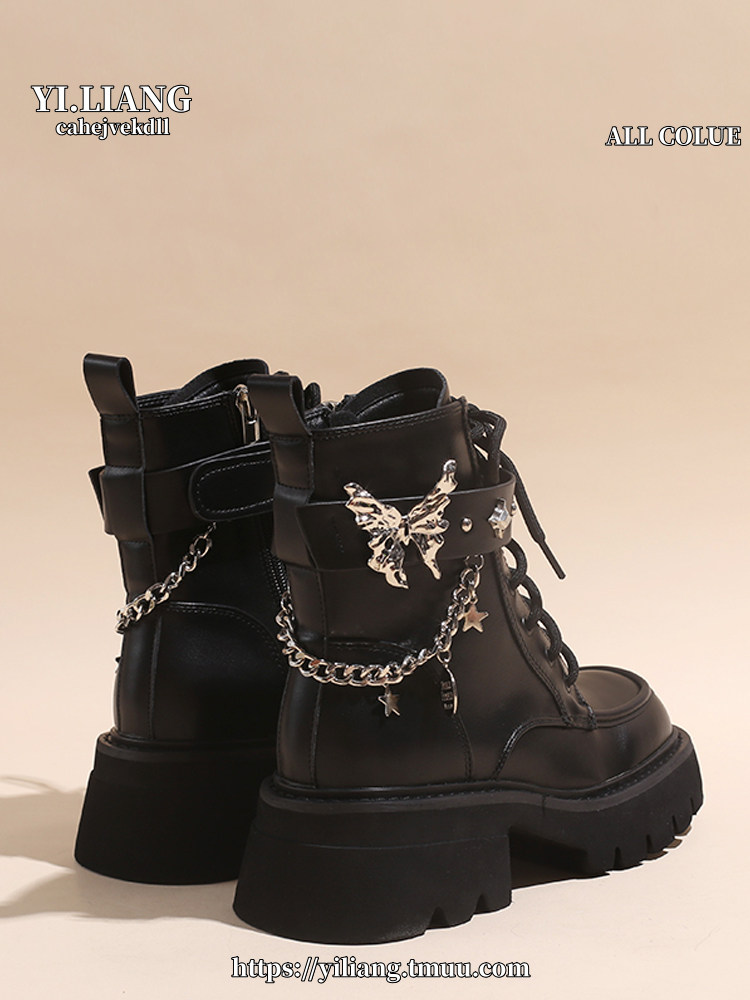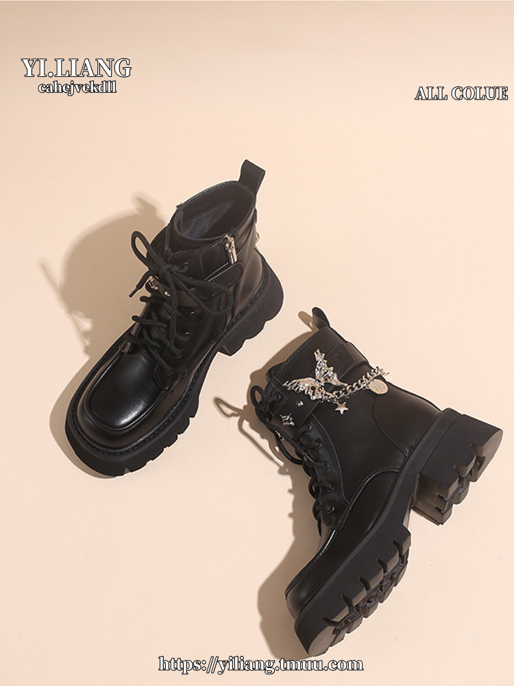 增高厚底复古女款2025新款小众方头松糕厚底jk短靴小个子马丁靴