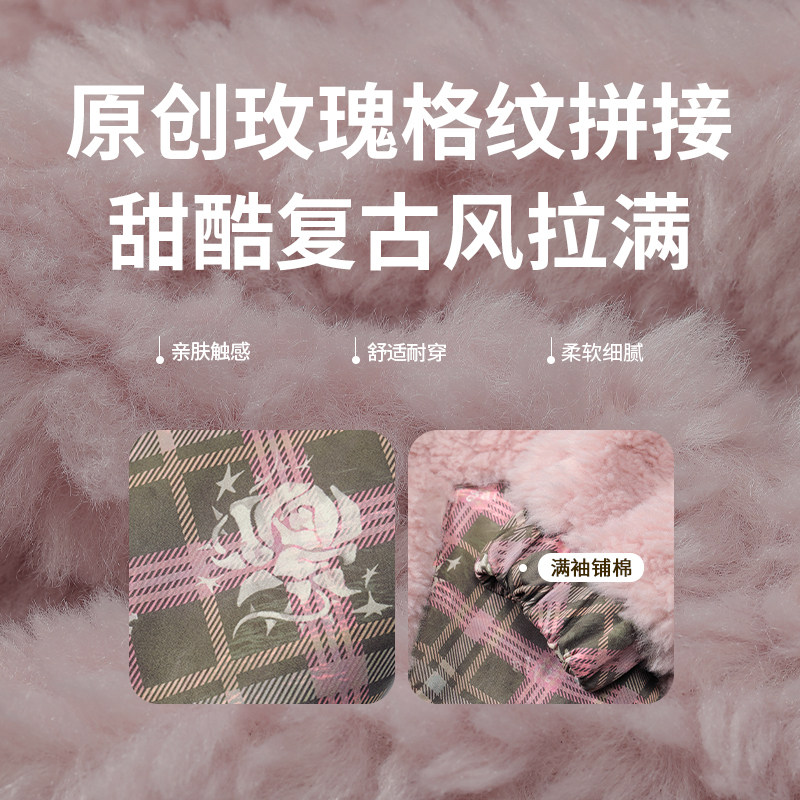 妖精的口袋格纹拼接小香风毛绒外套女2025冬新款新年战袍短款毛呢