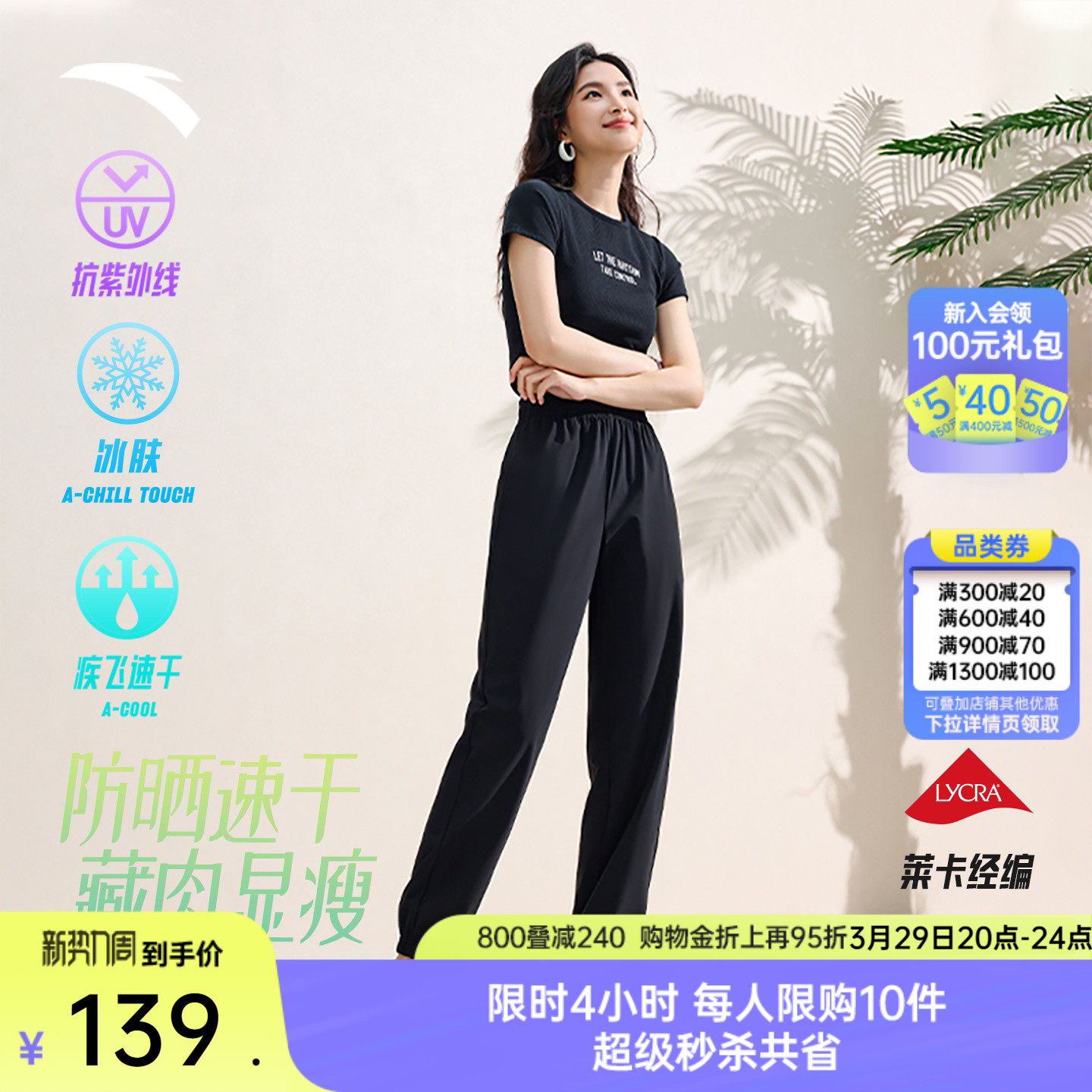 安踏自由裤丨防晒速干裤束脚裤宽松休闲运动长裤女士垂感瑜伽裤子