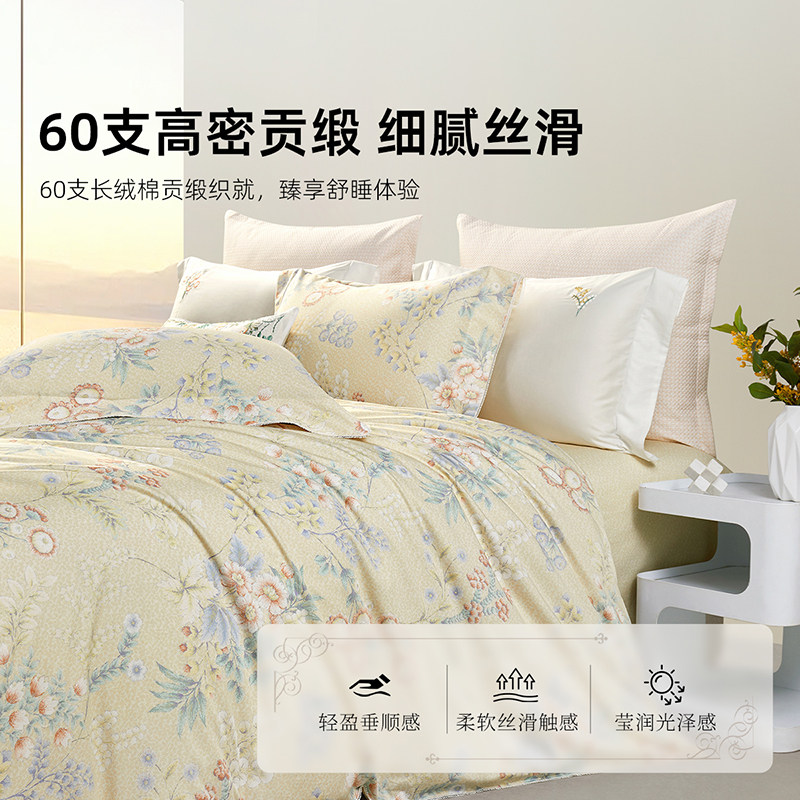 梦洁家纺60S长绒棉床上四件套纯棉全棉100被套床单2026年新款床品