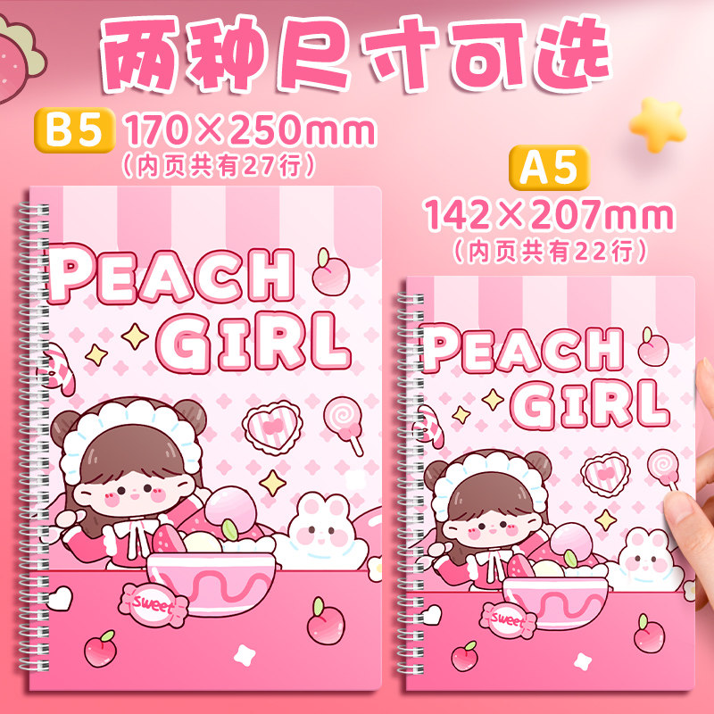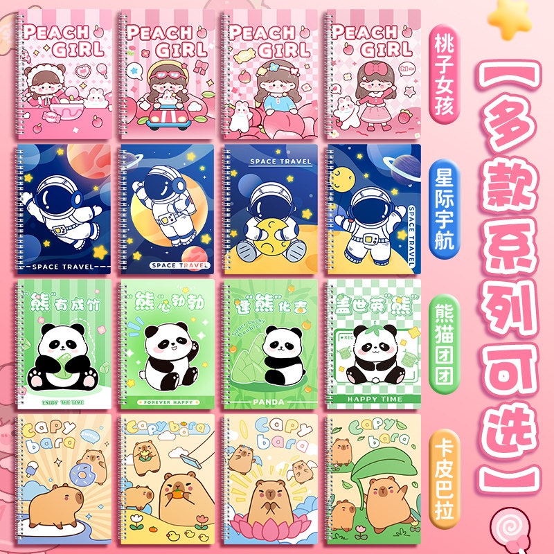 真彩线圈本笔记本子小学生初中生练习本2025年新款B5考研文具女生款卡通可爱高颜值好看16开A5少女心精致记事