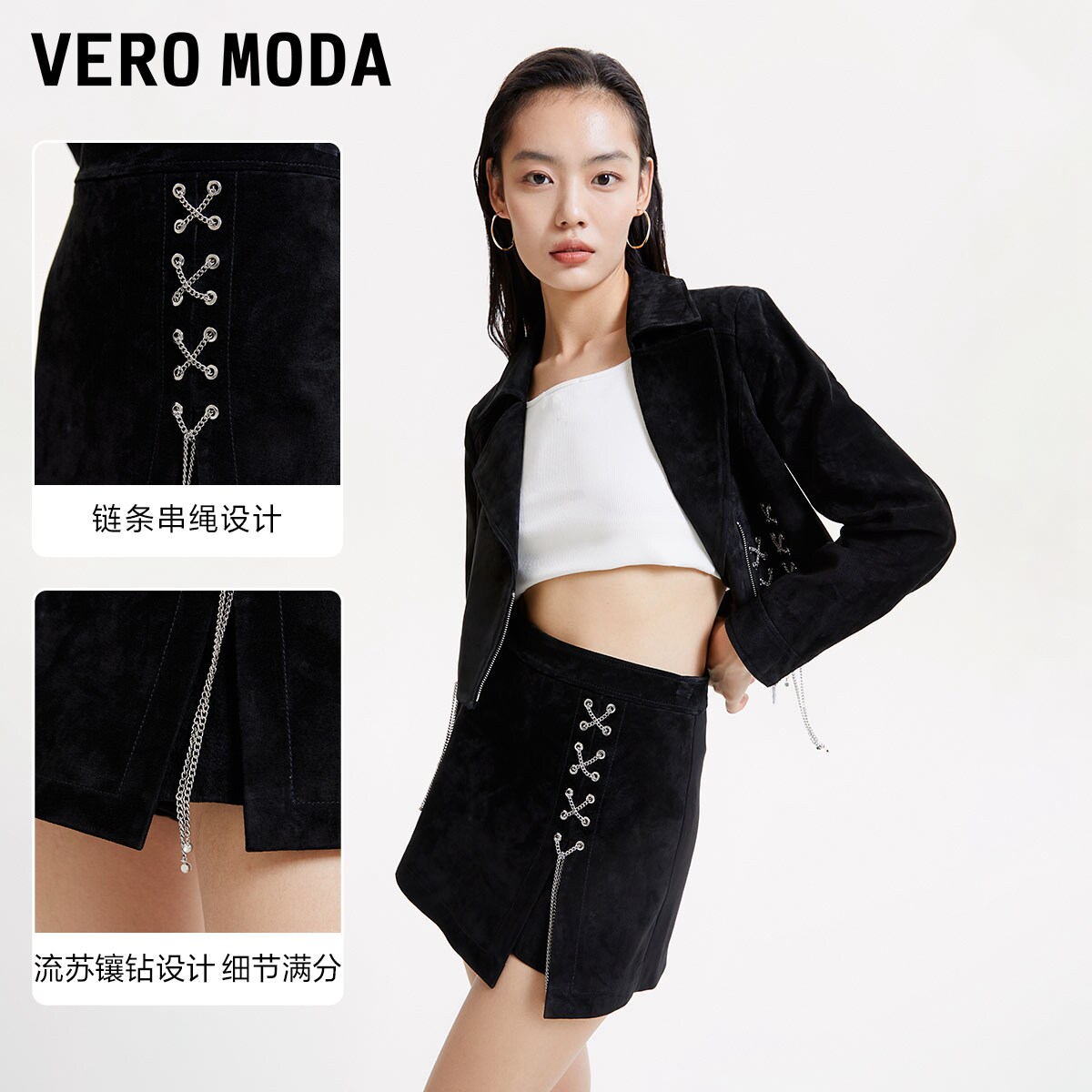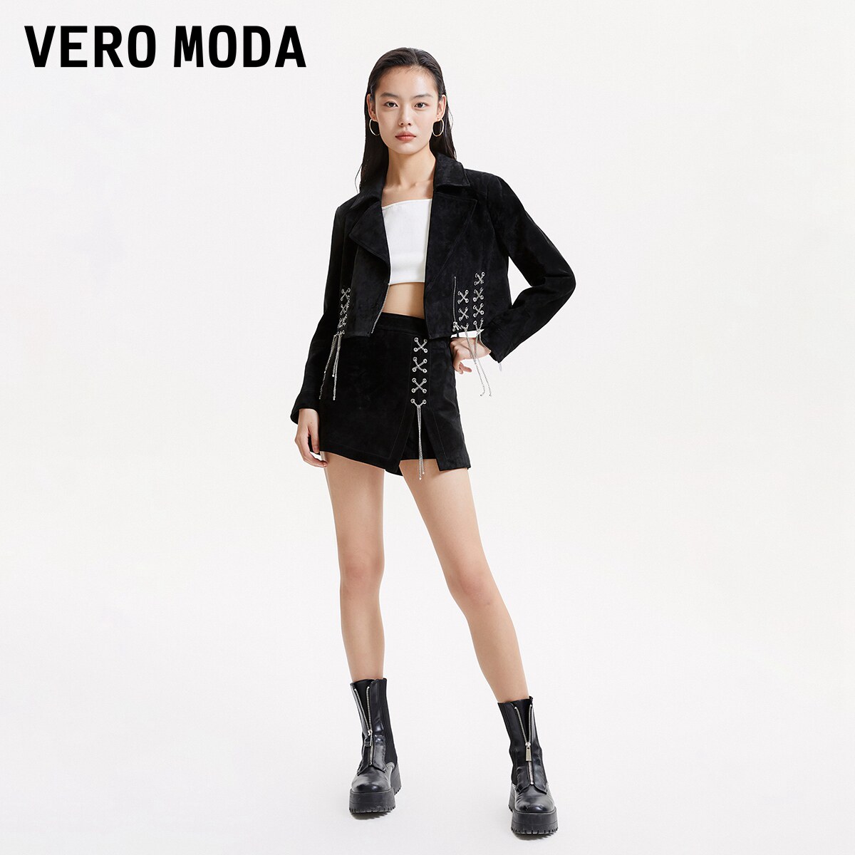 Vero Moda裙裤短裤女秋冬休闲高腰显瘦复古皮革324311003