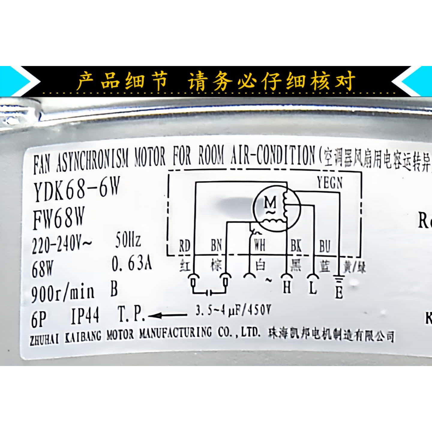 格力空调室外机风机电机YDK68-6W外风扇马达FW68W反转