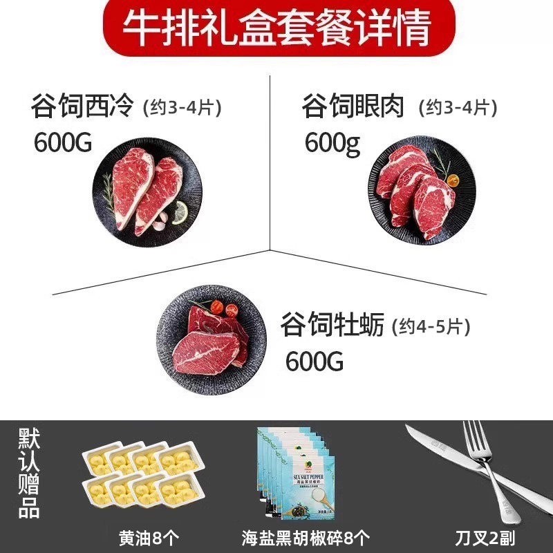西捷谷饲原切牛排礼盒1.8KG西冷眼肉板腱新年礼盒套餐牛肉牛扒