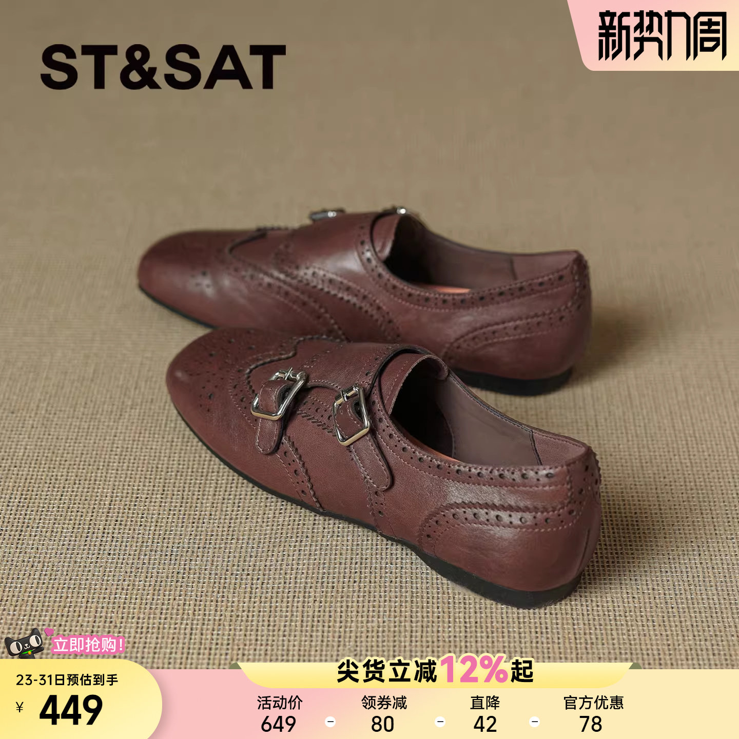 星期六法式低跟鞋女2026新款春季英伦风搭扣防滑一脚蹬浅口小皮鞋