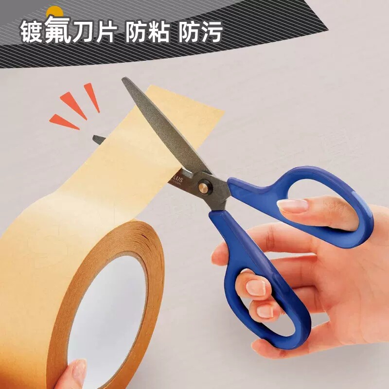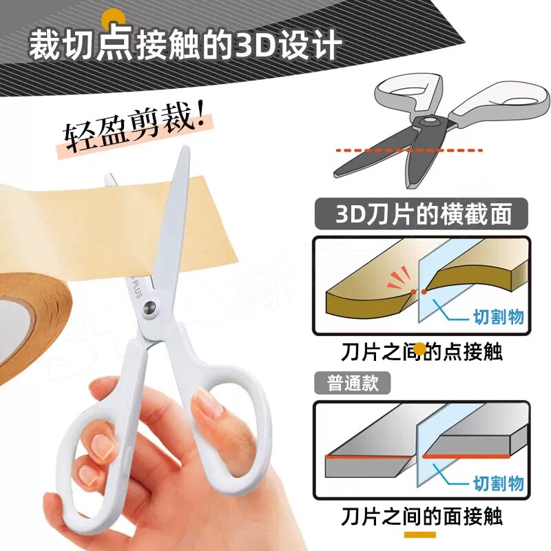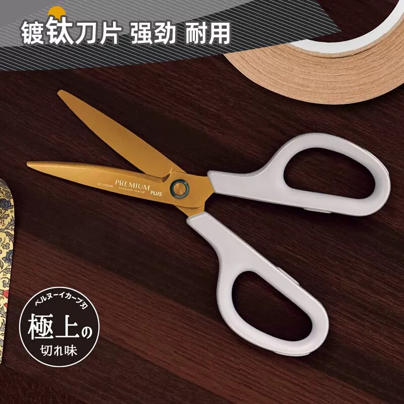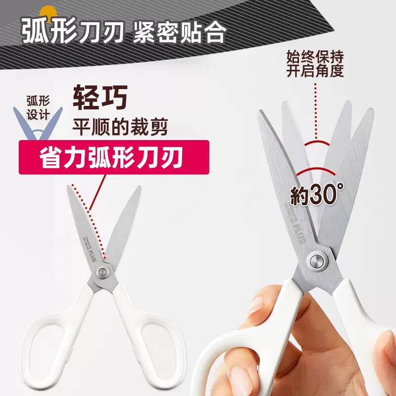 日本10周年限定PLUS普乐士剪刀3D氟涂层防污防粘镀钛耐磨强力轻松剪裁30度弧形刀刃家庭学生办公用剪子