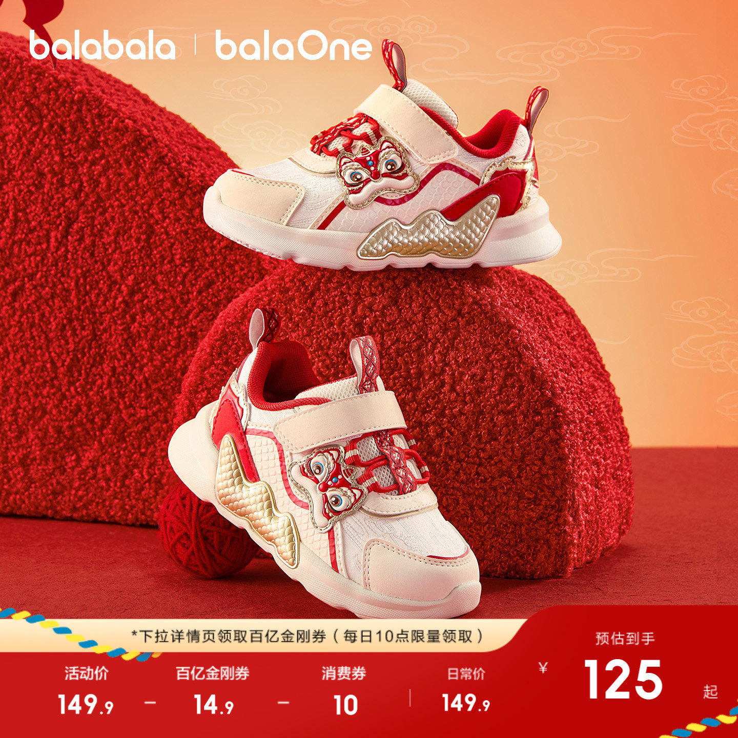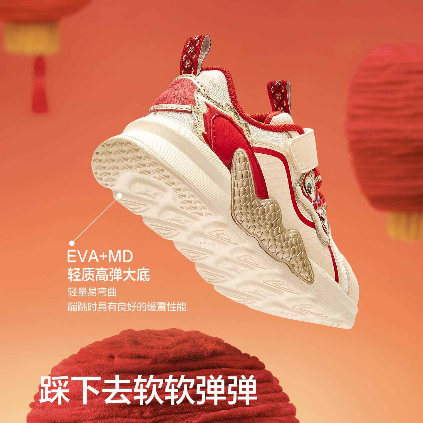 萌趣新年醒狮图案,缓震舒适学步鞋