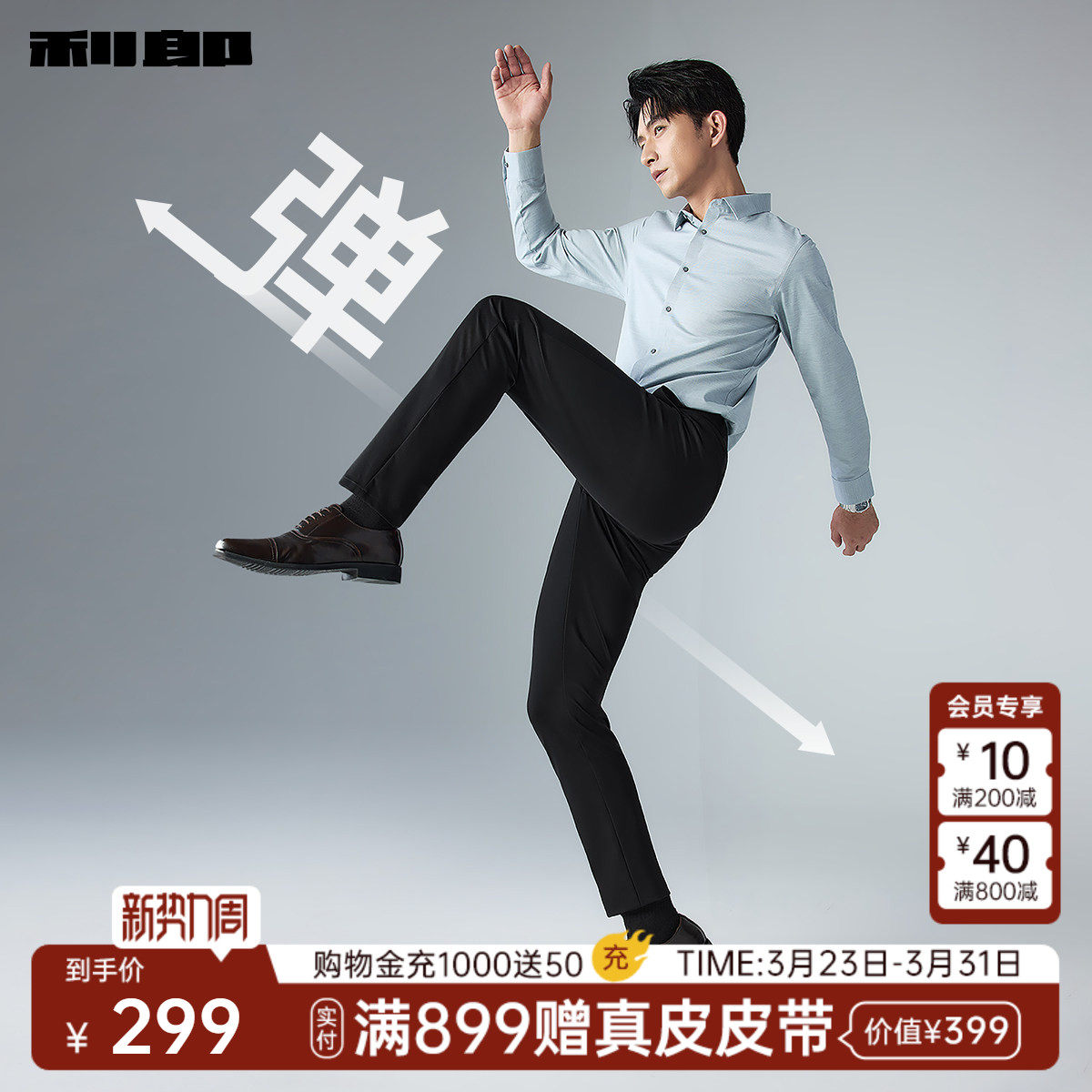 【直筒/含桑蚕丝】利郎官方 休闲裤男士弹力长裤26春季新款裤子男