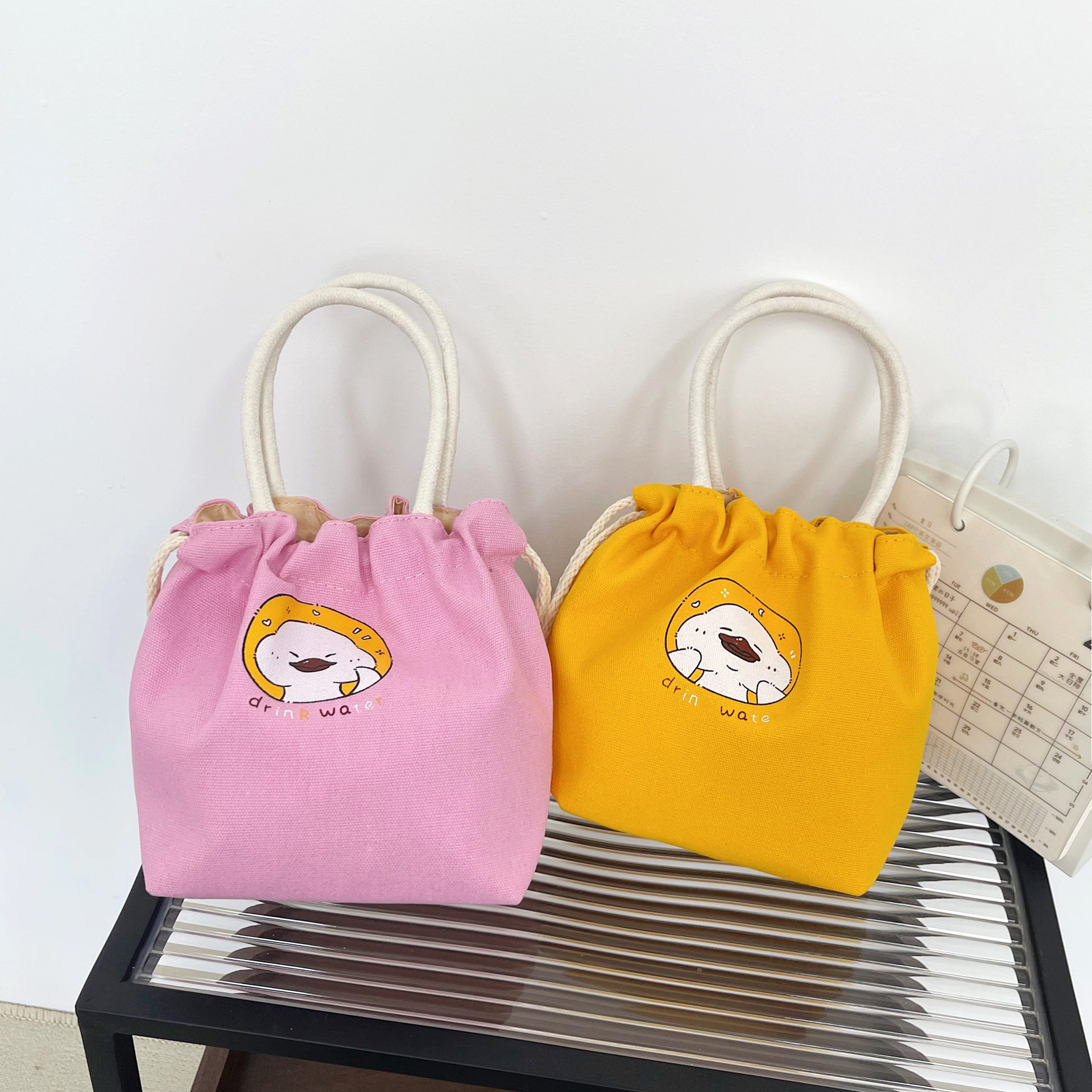 新款抽绳束口帆布小拎包小清新外出化妆包手提袋手机零食袋礼物袋