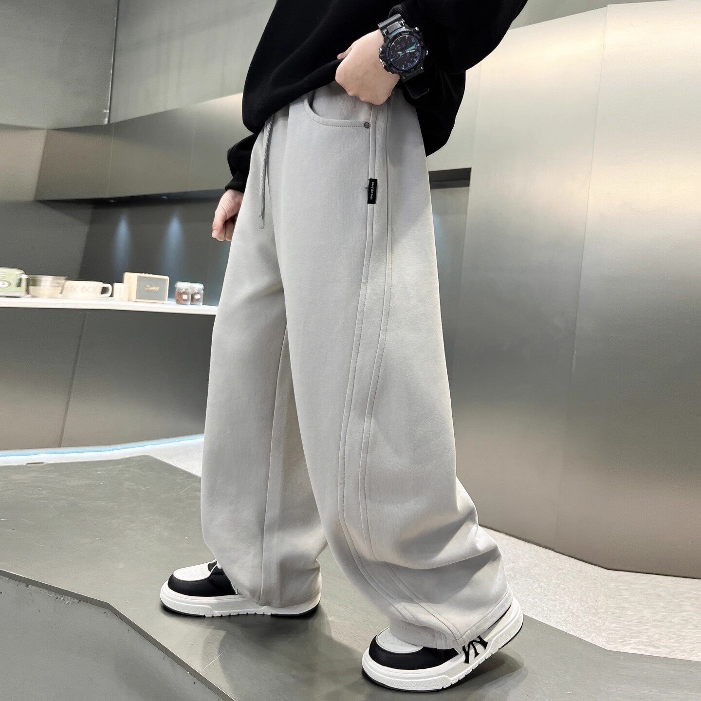 罗蒙儿童卡其色校园服裤子男童松紧西裤小学生加绒女童藏青运动裤