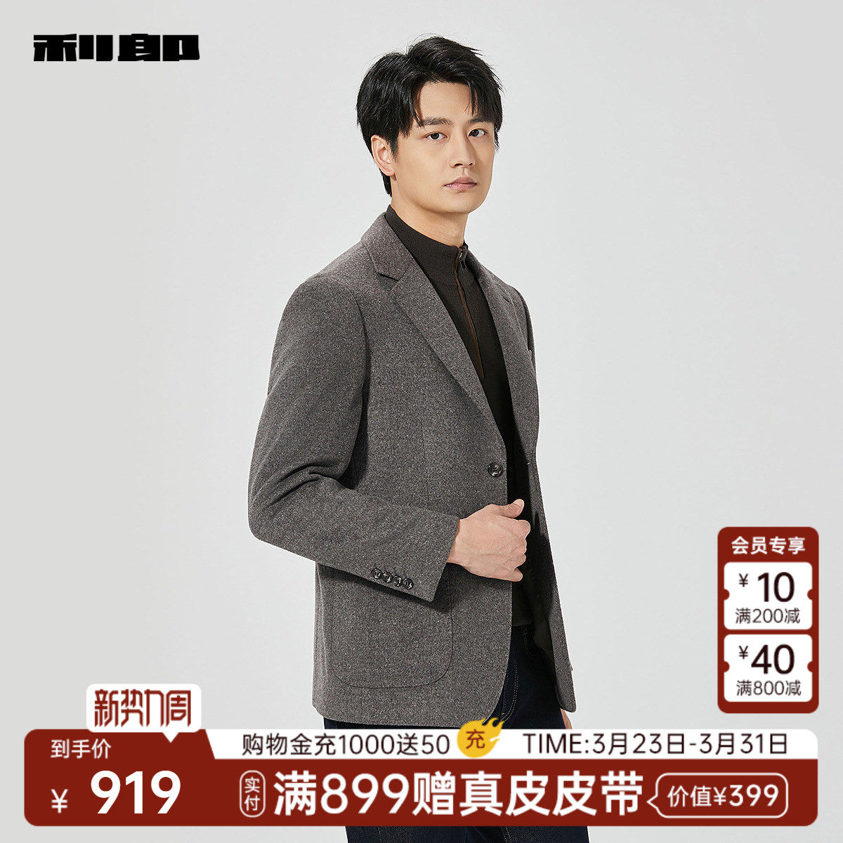 【骆驼绒】利郎官方 短款毛呢大衣男士商务休闲冬季西装外套