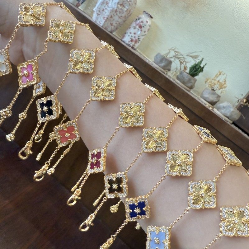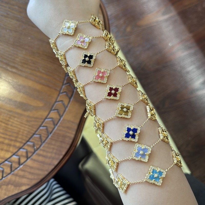 宫廷复古意大利高级感镭射雕刻五花手链镀金天然贝母百搭气质首饰